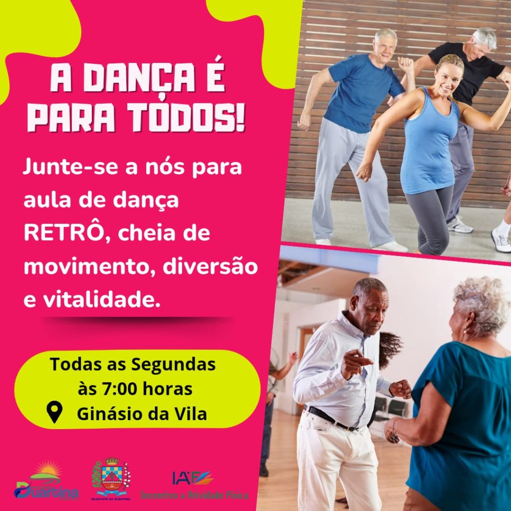 Toda segunda-feira, às 7h da manhã, o Ginásio da Vila recebe a aula de dança retrô, um convite especial para começar a semana com energia, alegria e movimento.