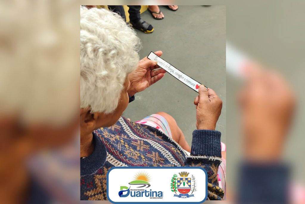 Ao final da atividade, cada idoso recebeu uma frase sorteada, como uma mensagem de carinho e cuidado para guardar e se inspirar — palavras que lembram a importância de viver cada fase da vida com alegria e esperança.