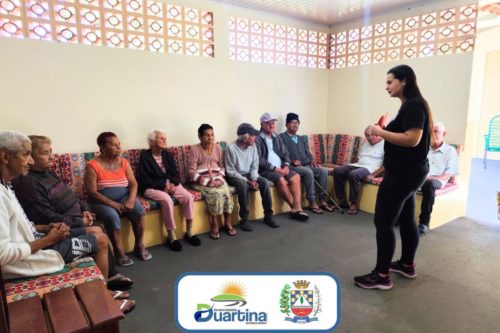 Na manhã desta quinta-feira (23), a psicóloga Amanda Moraes e a fisioterapeuta Tânia Hiráo, profissionais da equipe eMulti da APS – Atenção Primária à Saúde, realizaram uma roda de conversa com os idosos do Recanto Vicentino, com o tema saúde mental e saúde emocional.