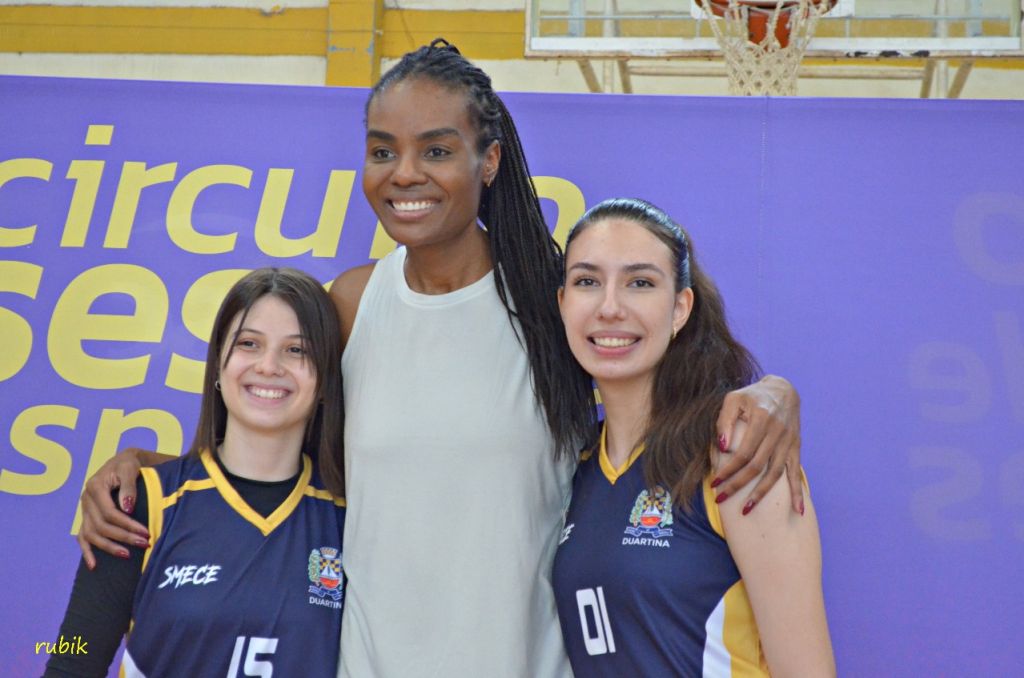 Durante a atividade, Fabiana Claudino demonstrou fundamentos do vôlei, orientou os participantes e compartilhou experiências de sua trajetória, reforçando a importância do esporte para formação, disciplina e qualidade de vida. A atleta também interagiu com o público, fez fotos e deixou mensagens motivadoras aos jovens duartinenses.