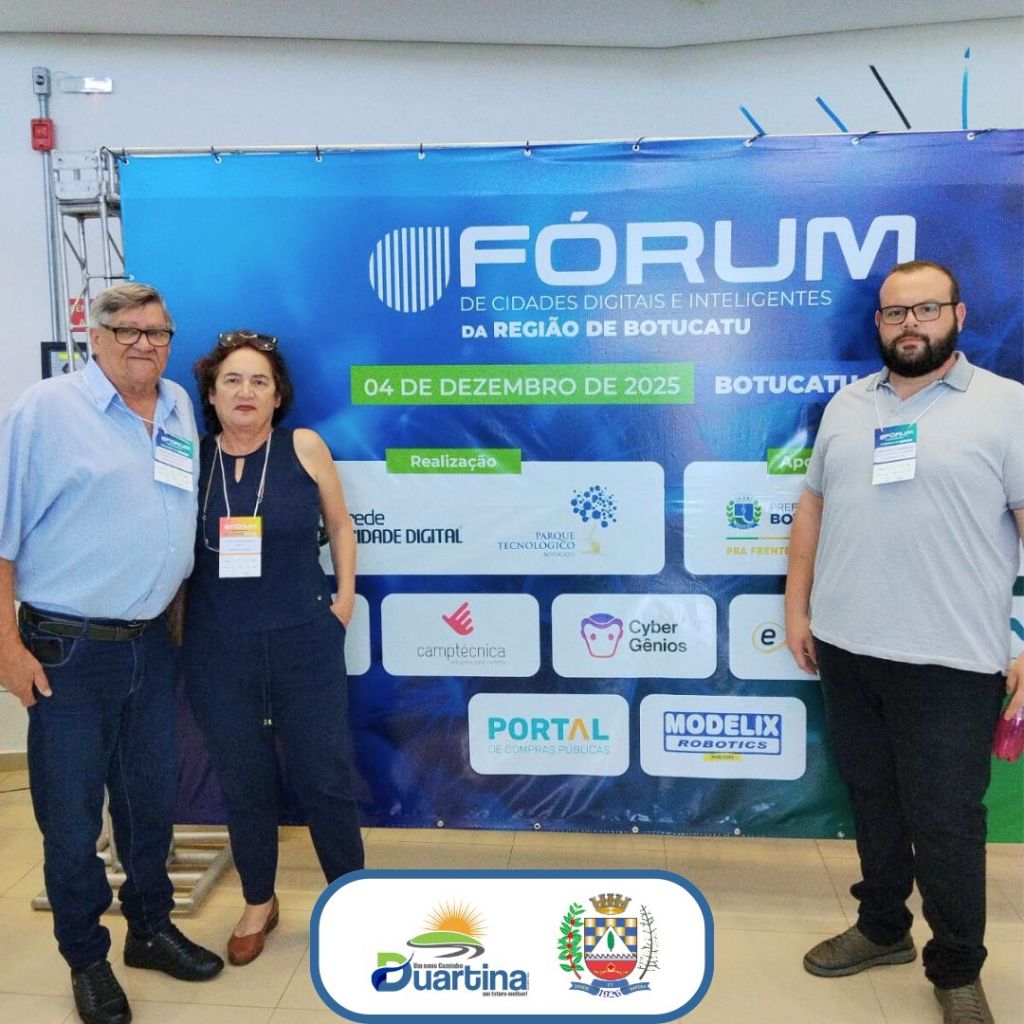 Suzy esteve acompanhada do esposo e primeiro-cavalheiro, Paulo Sérgio, e do secretário municipal de Meio Ambiente e Agricultura, Pedro Duarval. O reconhecimento reforça o trabalho da administração de Duartina em modernizar processos e aprimorar o atendimento à população por meio da tecnologia.