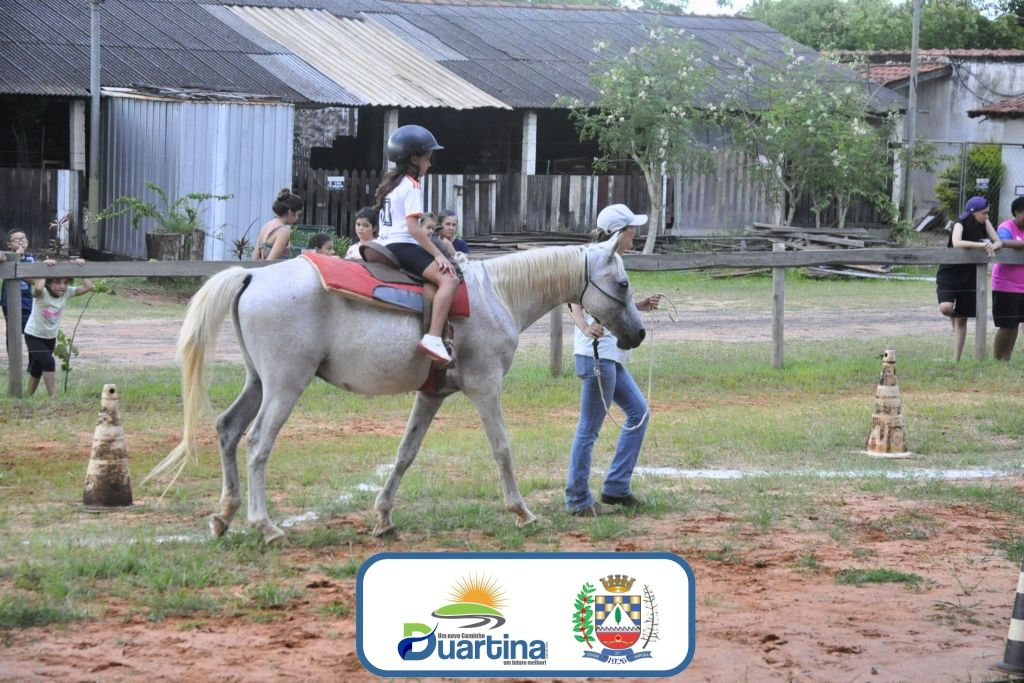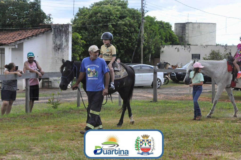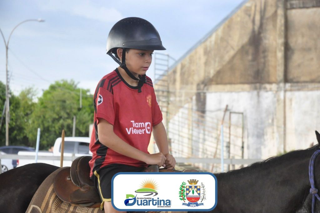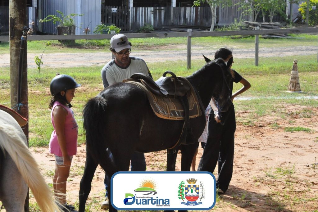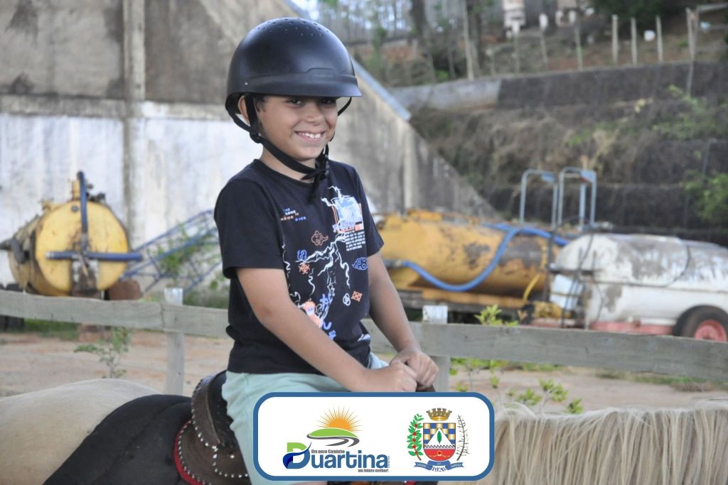 A atividade aconteceu no Clube de Rodeio de Duartina e foi uma iniciativa do professor João, com o objetivo de proporcionar às crianças o contato com a equoterapia, destacando a importância da disciplina, do respeito, da concentração e do desenvolvimento físico e emocional.