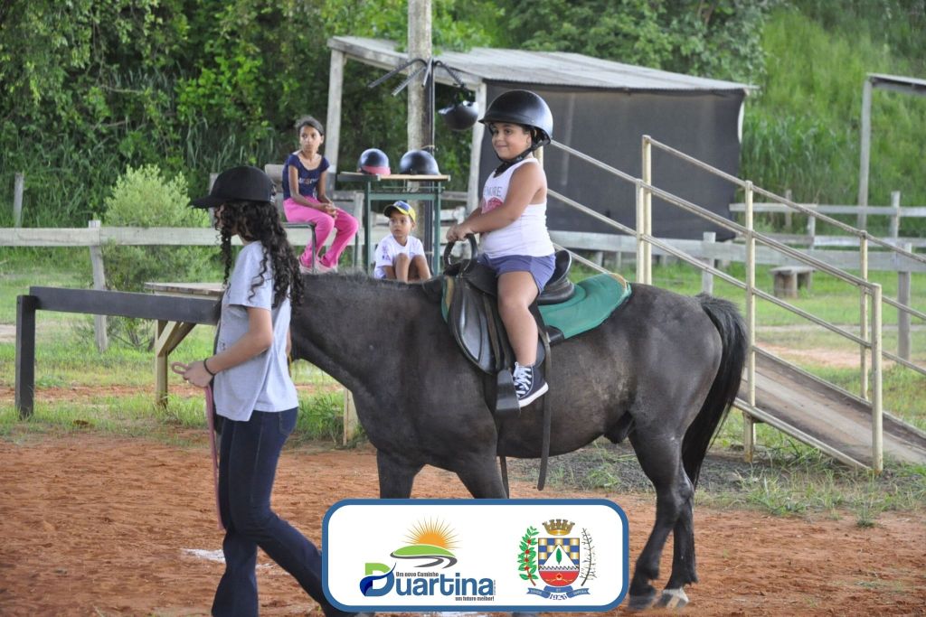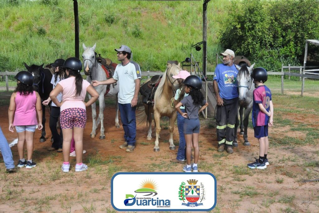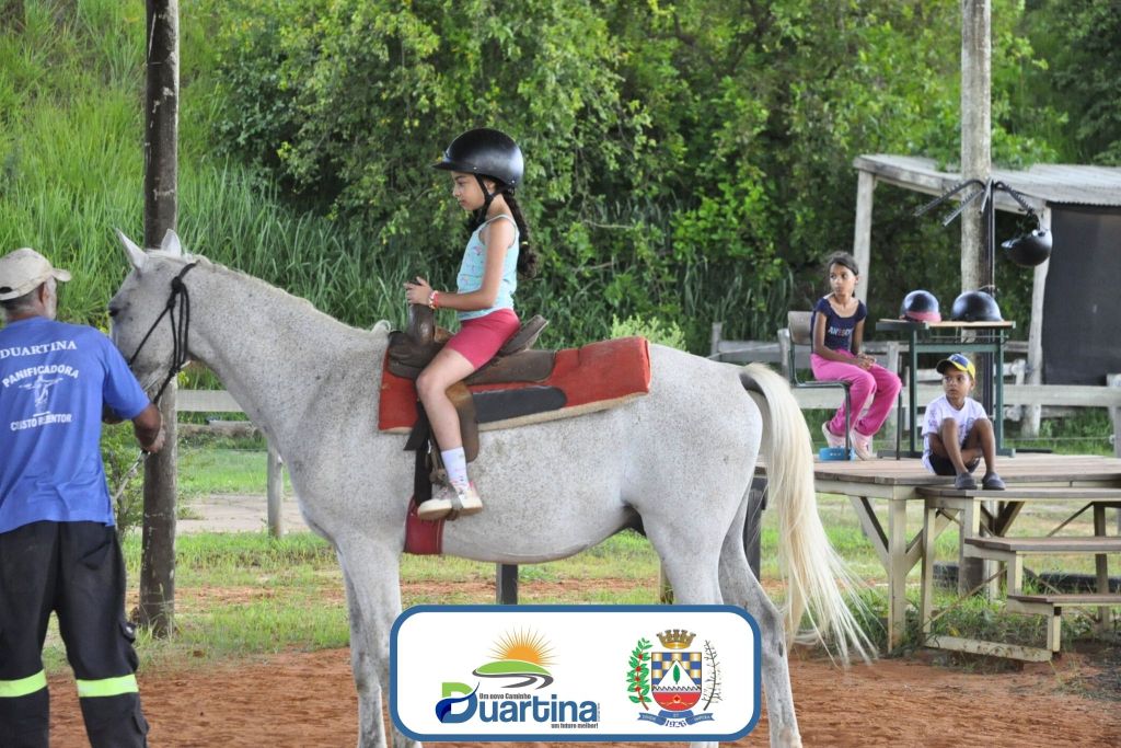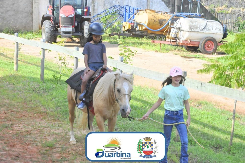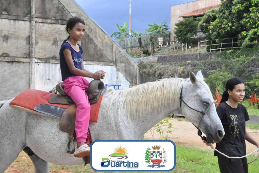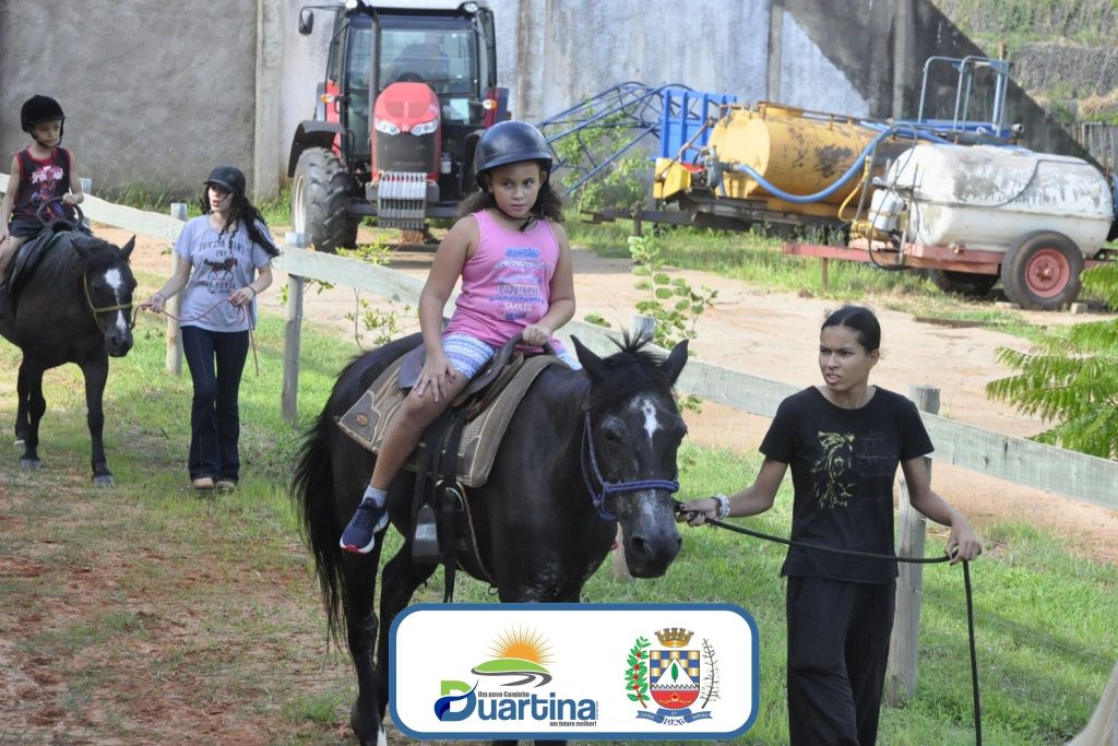 A atividade aconteceu no Clube de Rodeio de Duartina e foi uma iniciativa do professor João, com o objetivo de proporcionar às crianças o contato com a equoterapia, destacando a importância da disciplina, do respeito, da concentração e do desenvolvimento físico e emocional.