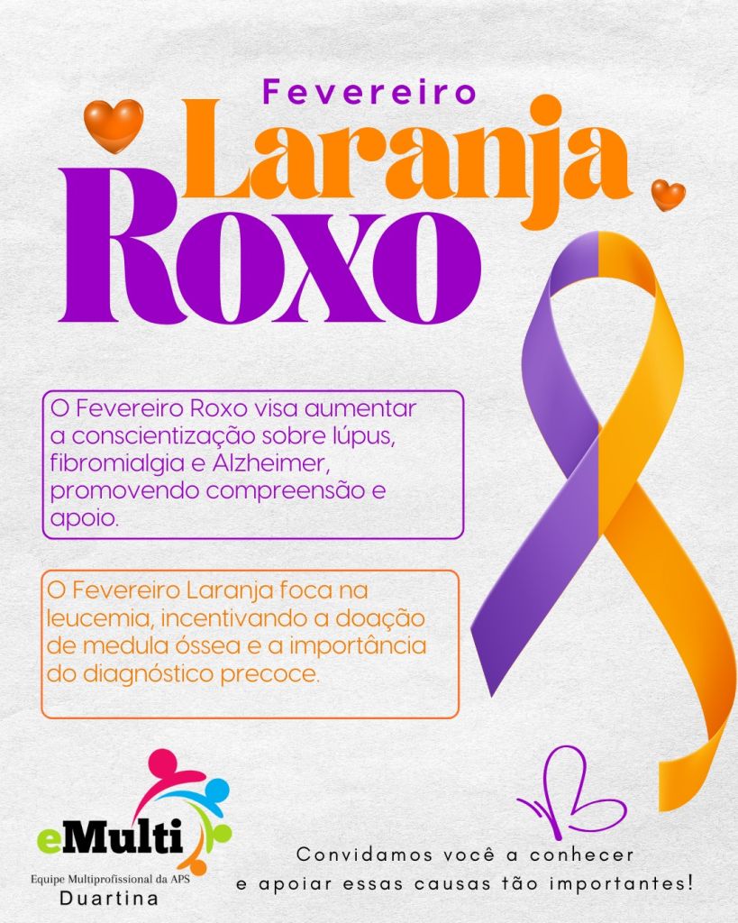Em fevereiro, a ação destaca o Fevereiro Roxo, com orientações sobre Lúpus, Fibromialgia e Mal de Alzheimer, e o Fevereiro Laranja, voltado à conscientização sobre a Leucemia.