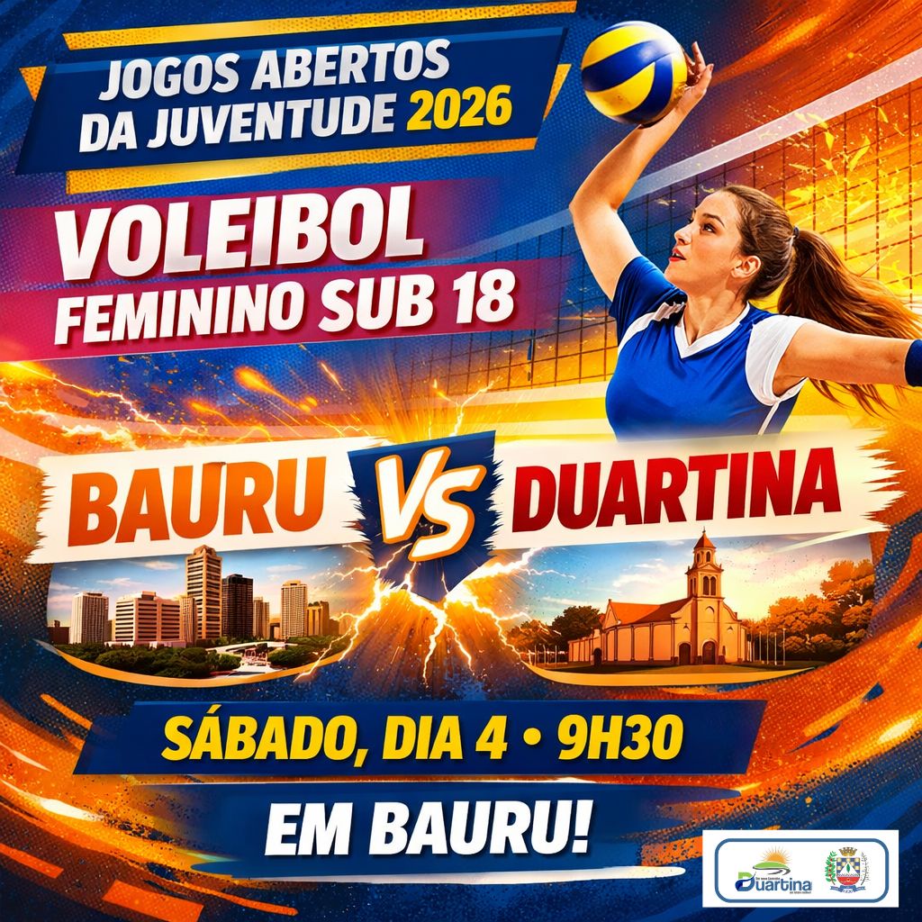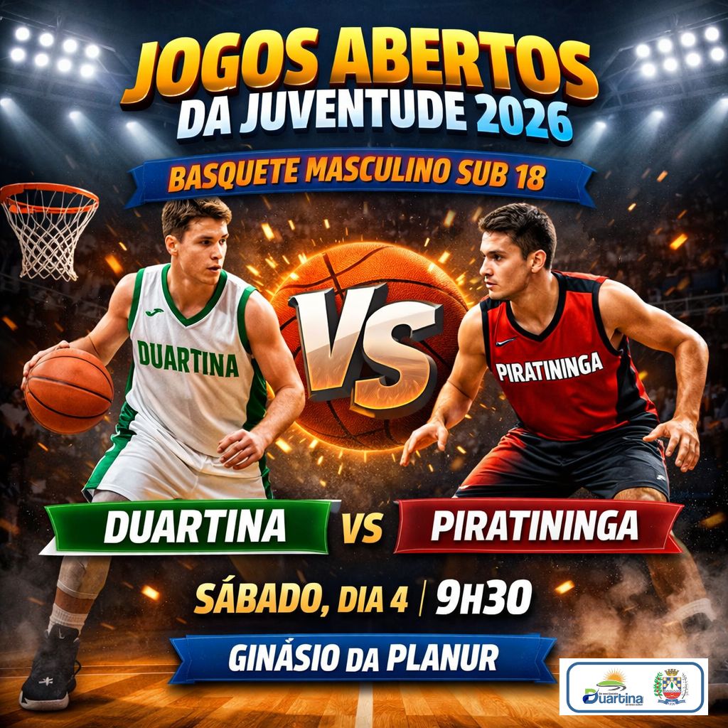 A Prefeitura de Duartina, por meio da Secretaria Municipal de Educação, Cultura e Esportes, convida toda a população para acompanhar e torcer pelos jovens atletas do município que entram em quadra neste sábado (4), em mais uma rodada dos Jogos Abertos da Juventude 2026.