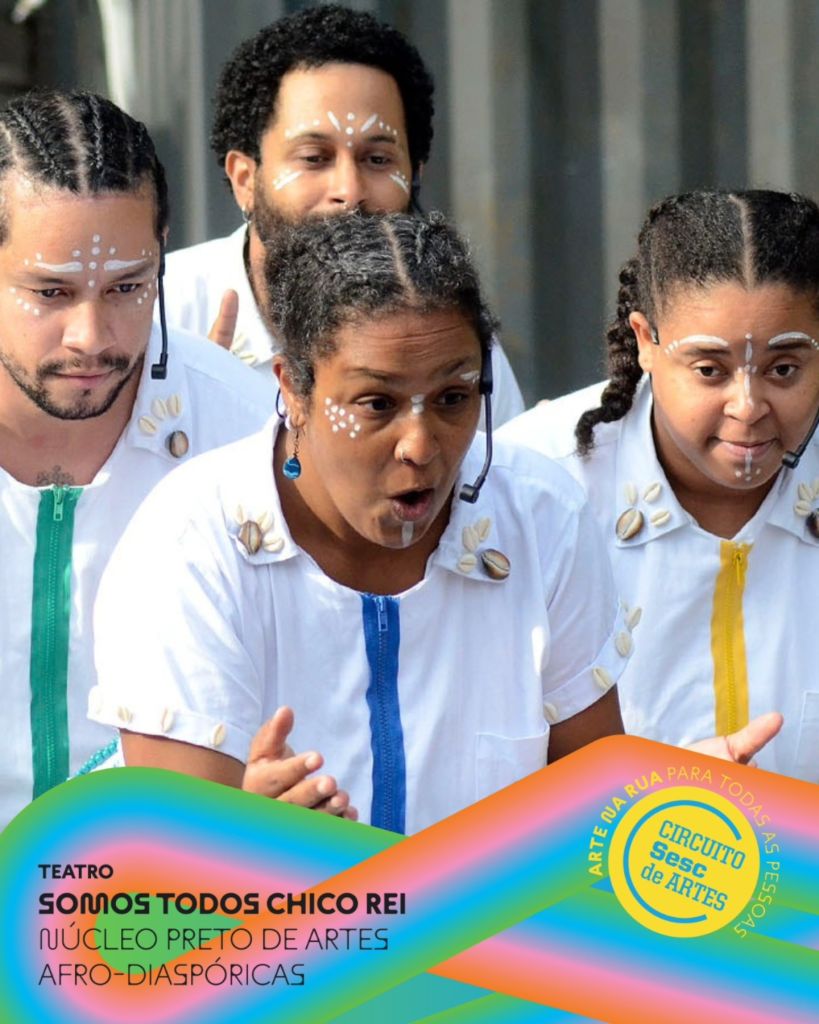 No teatro, o Núcleo Preto de Artes Afro-diaspóricas apresenta Somos Todos Chico Rei, espetáculo infantojuvenil que revisita, de maneira poética, a trajetória de resistência do lendário rei africano escravizado no Brasil. Inspirada nas tradições da Congada e do Reinado, a montagem aborda temas como ancestralidade, memória e liberdade.