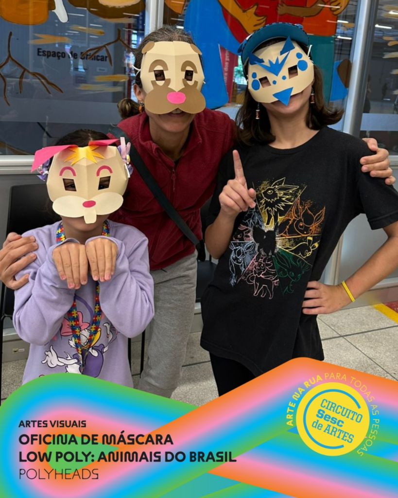 As artes visuais chegam com duas oficinas abertas ao público. Em Confecção de Boi-Bumbá, o Ateliê Passarada convida os participantes a criarem miniaturas do tradicional personagem festivo, em uma atividade que termina com brincadeira coletiva, cantos e danças. Já a Oficina de máscara Low poly: Animais do Brasil, do Polyheads, propõe a construção de máscaras tridimensionais de papel inspiradas na fauna brasileira, estimulando criatividade, atenção e coordenação motora.