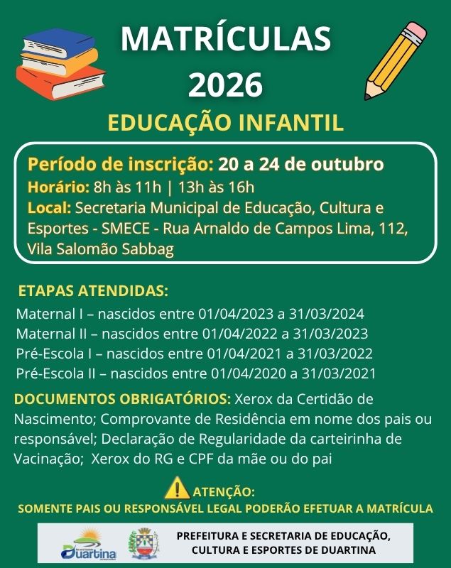MATRÍCULAS 2026 – EDUCAÇÃO INFANTIL