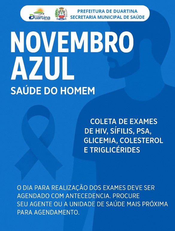 A Prefeitura de Duartina, por meio da Secretaria Municipal de Saúde, convida todos os homens a participarem da Campanha Novembro Azul, voltada à prevenção e cuidado com a saúde masculina.