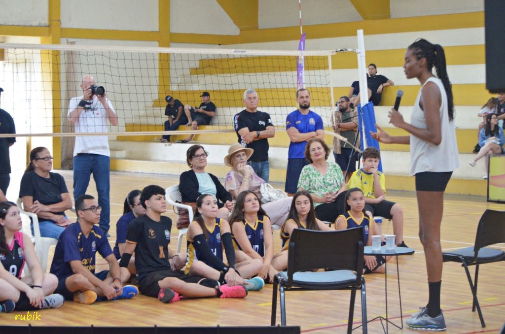 Durante a atividade, Fabiana Claudino demonstrou fundamentos do vôlei, orientou os participantes e compartilhou experiências de sua trajetória, reforçando a importância do esporte para formação, disciplina e qualidade de vida. A atleta também interagiu com o público, fez fotos e deixou mensagens motivadoras aos jovens duartinenses.
