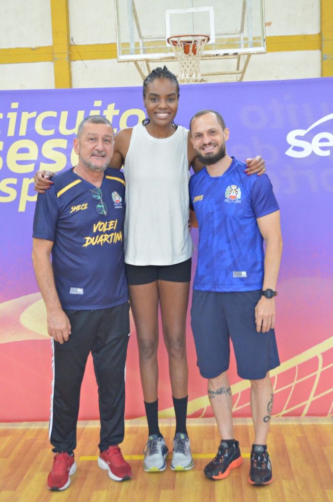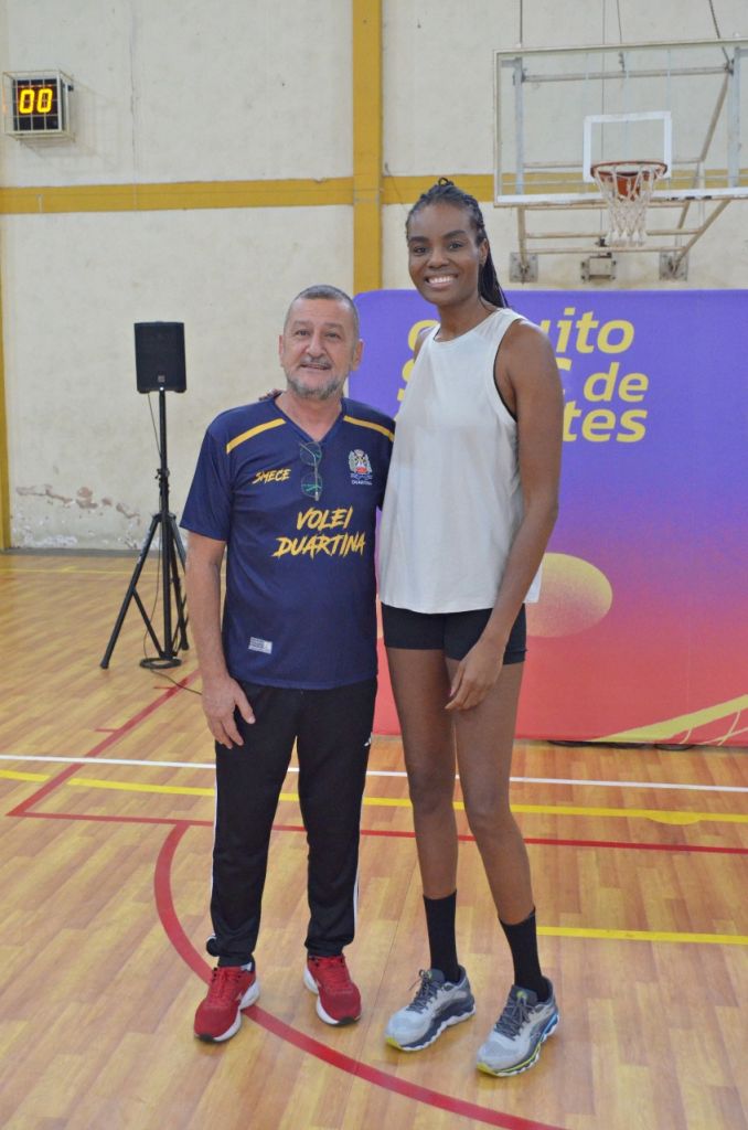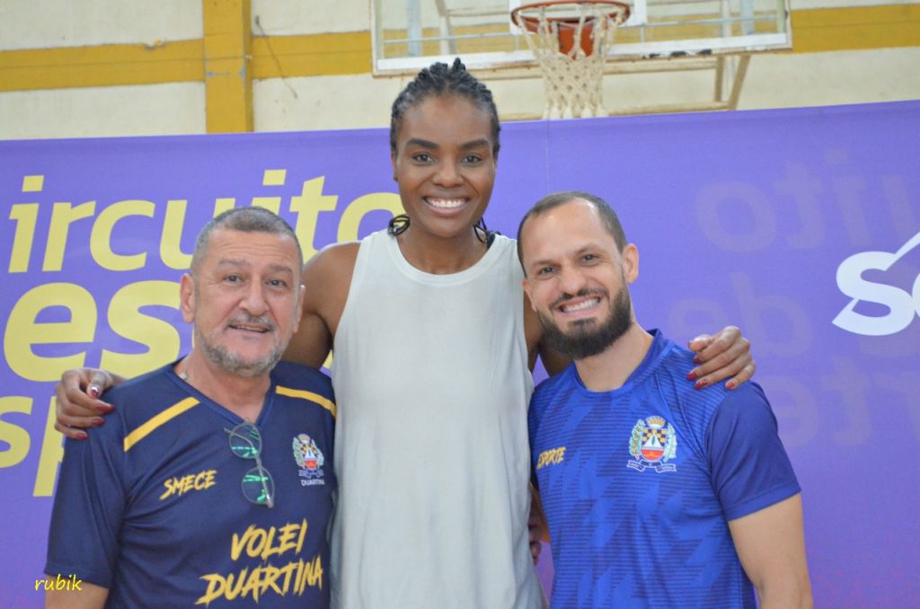 A Prefeitura de Duartina e a Secretaria Municipal de Esportes realizaram, no domingo (16), uma manhã especial dedicada ao fomento ao esporte com a vivência prática de vôlei conduzida pela campeã olímpica Fabiana Claudino, dentro da programação do Circuito Sesc de Esportes. O encontro aconteceu no Ginásio de Esportes da Planur e foi aberto gratuitamente à comunidade, reunindo crianças, jovens e adultos em um momento de aprendizado e integração.
