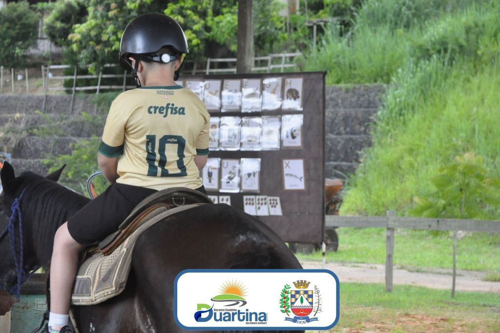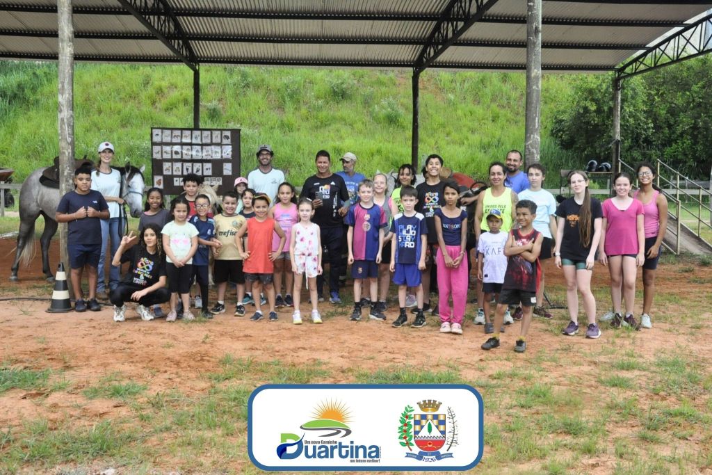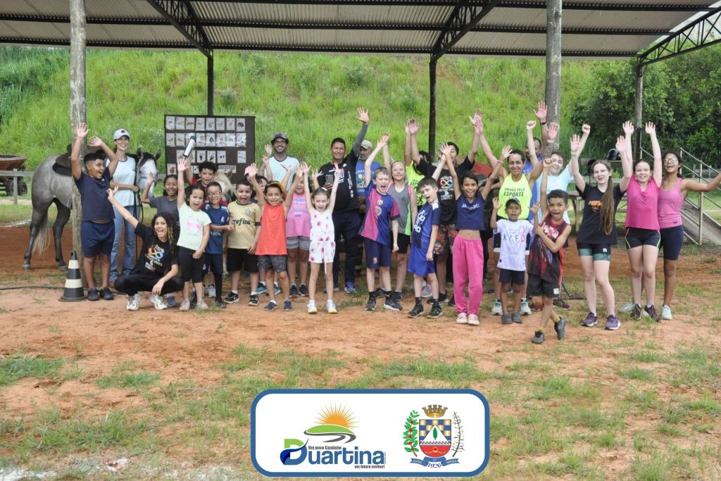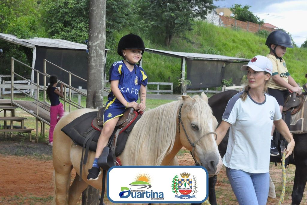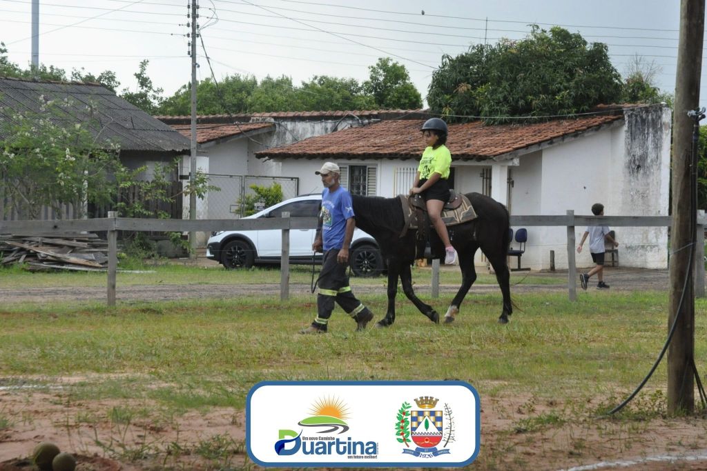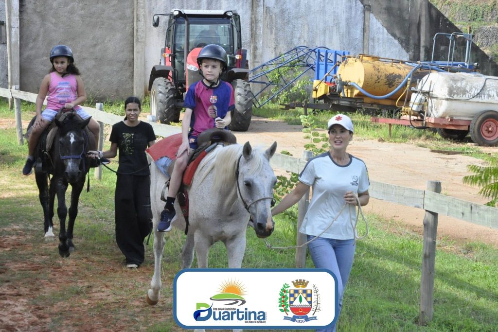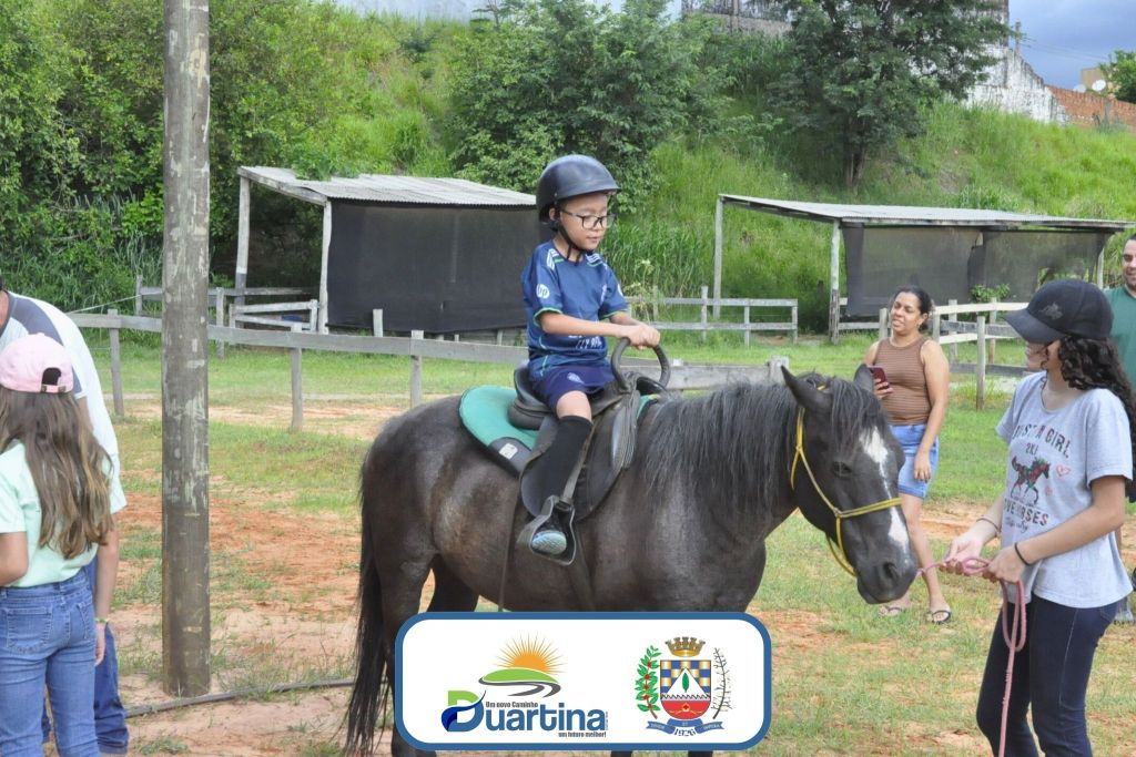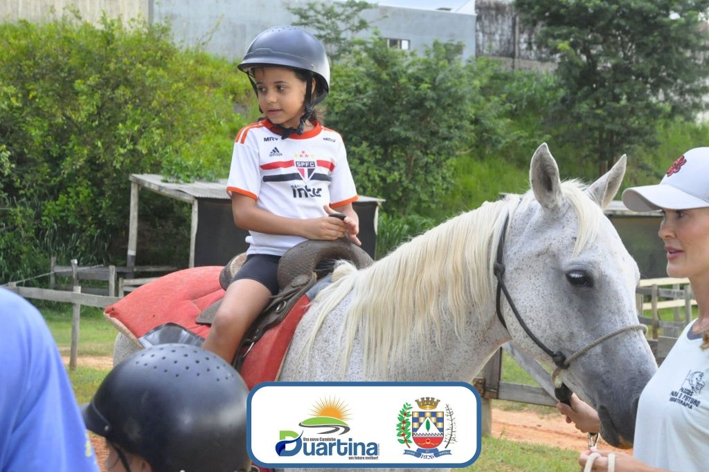 A atividade aconteceu no Clube de Rodeio de Duartina e foi uma iniciativa do professor João, com o objetivo de proporcionar às crianças o contato com a equoterapia, destacando a importância da disciplina, do respeito, da concentração e do desenvolvimento físico e emocional.