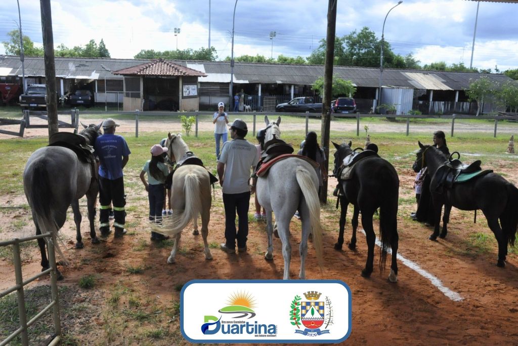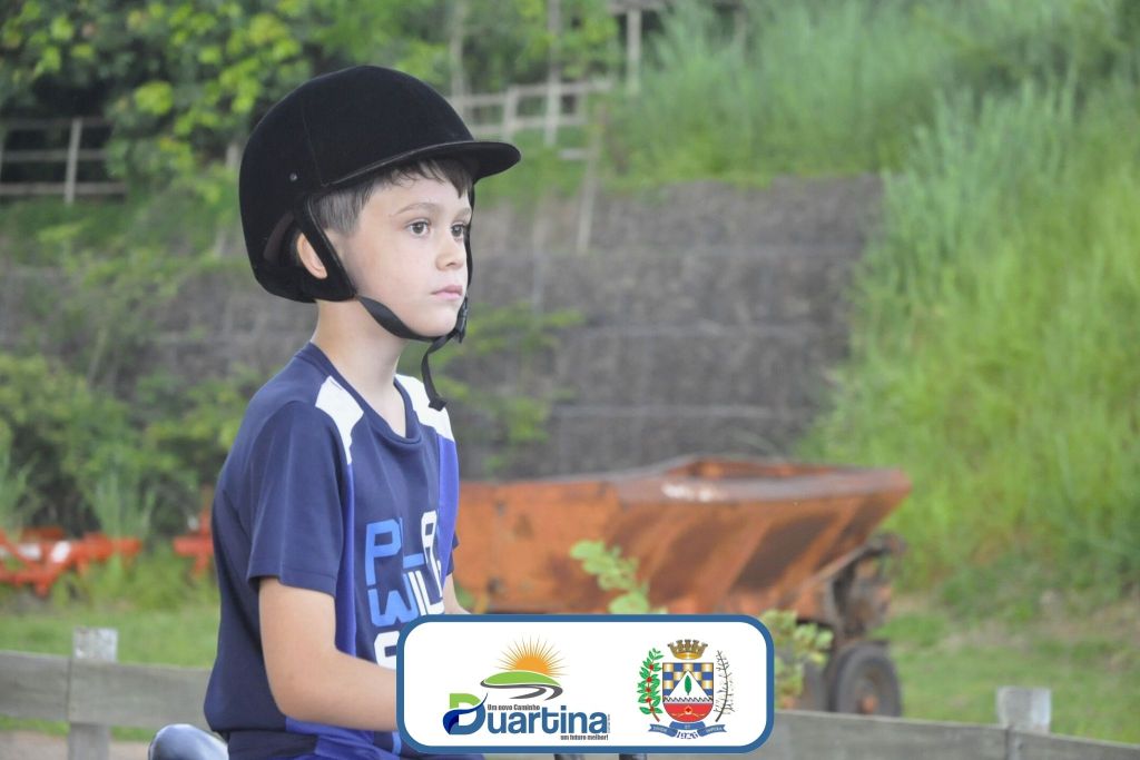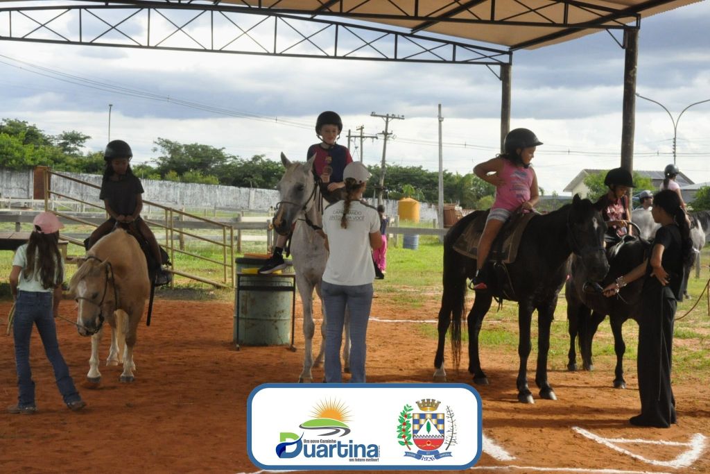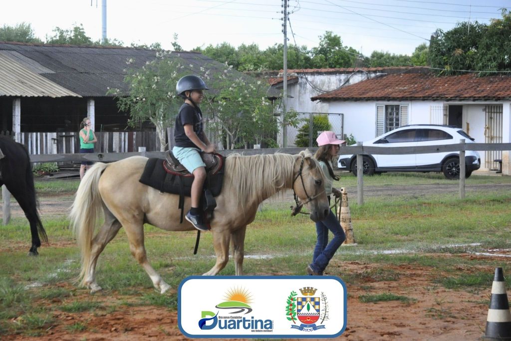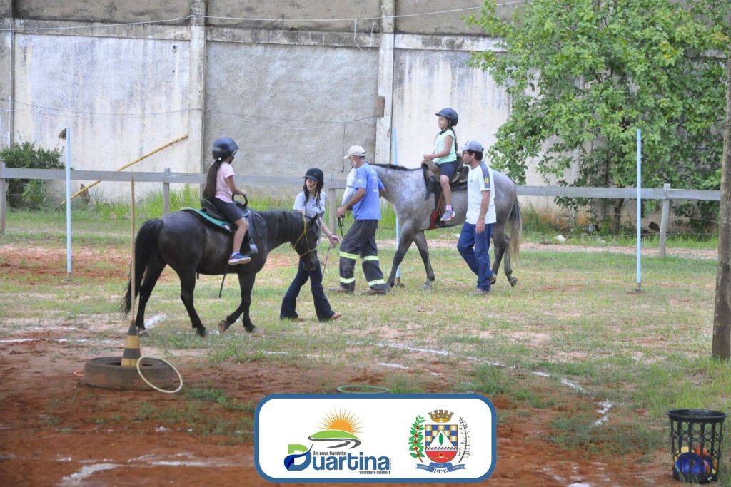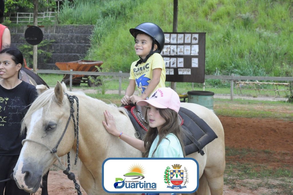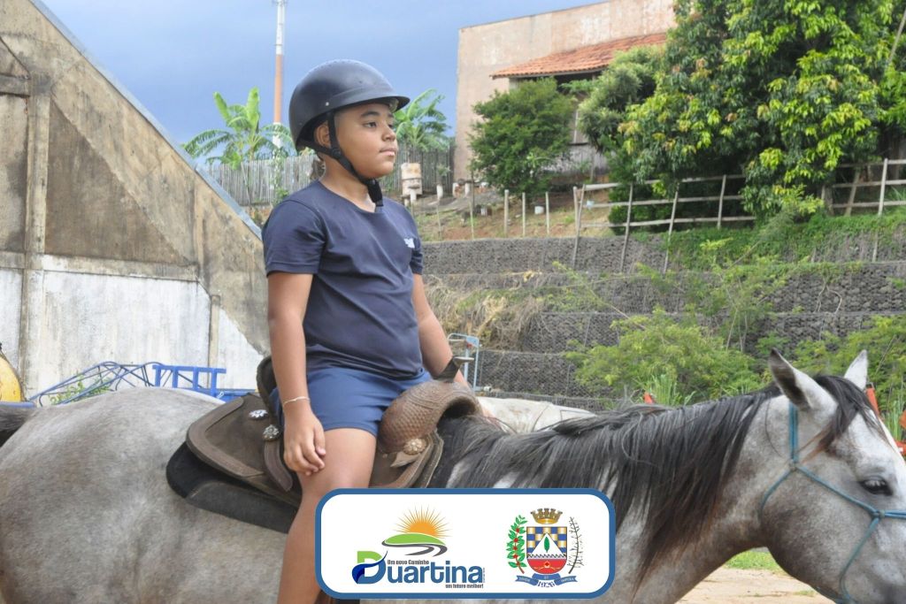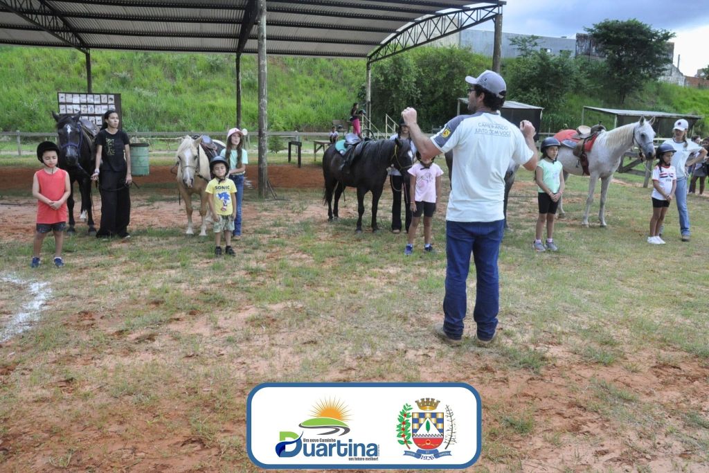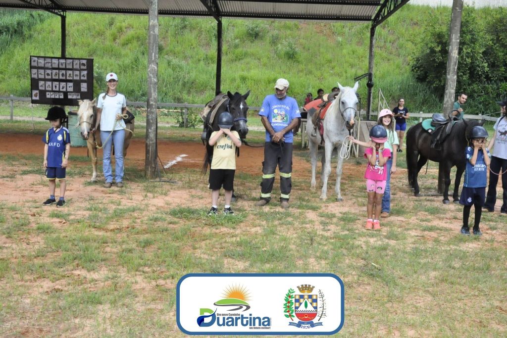 A atividade aconteceu no Clube de Rodeio de Duartina e foi uma iniciativa do professor João, com o objetivo de proporcionar às crianças o contato com a equoterapia, destacando a importância da disciplina, do respeito, da concentração e do desenvolvimento físico e emocional.