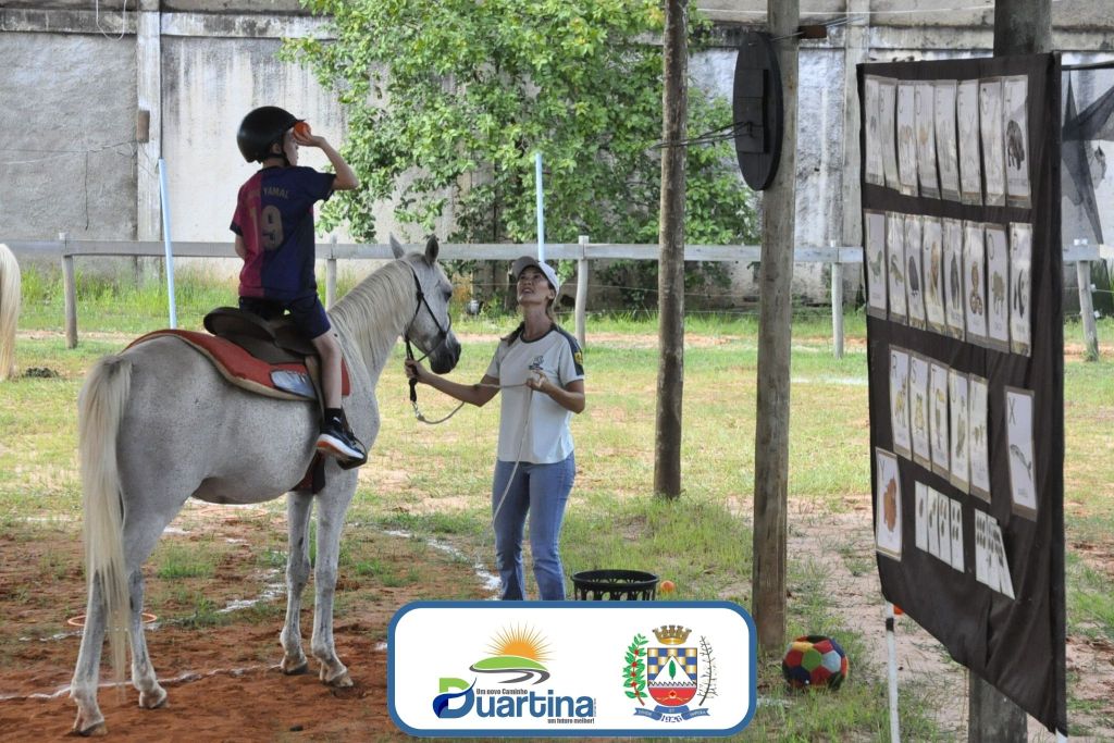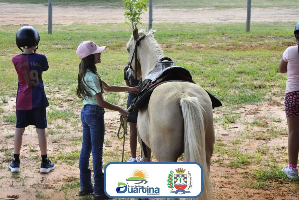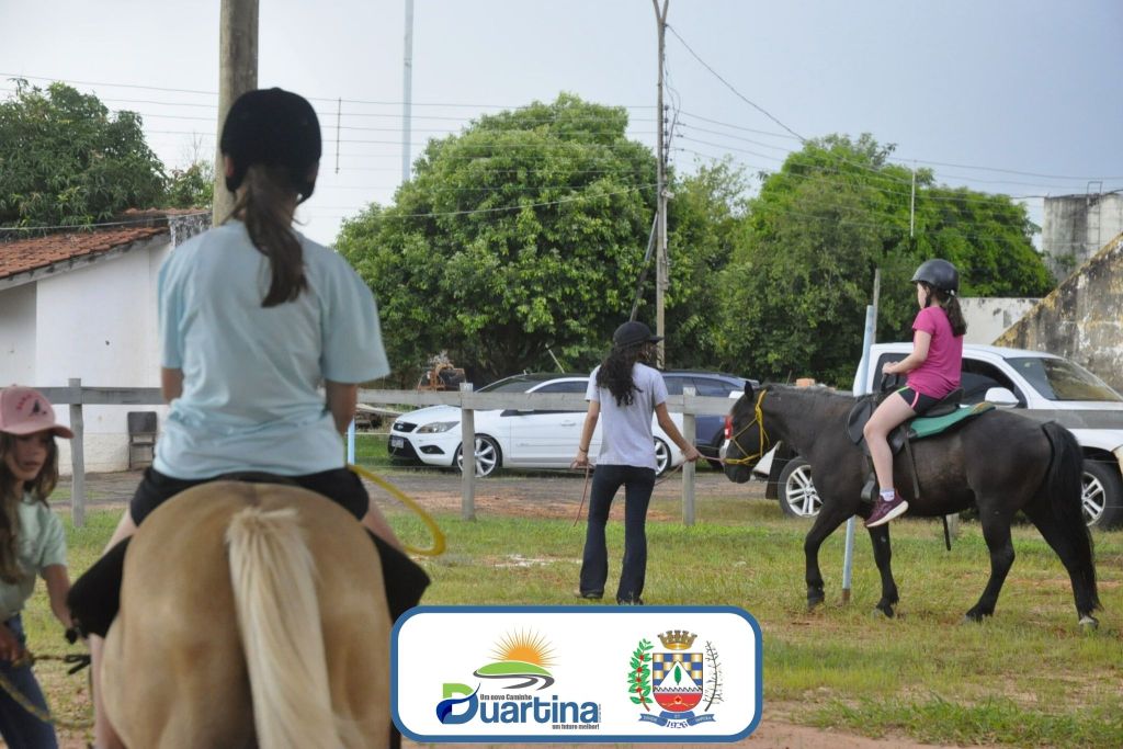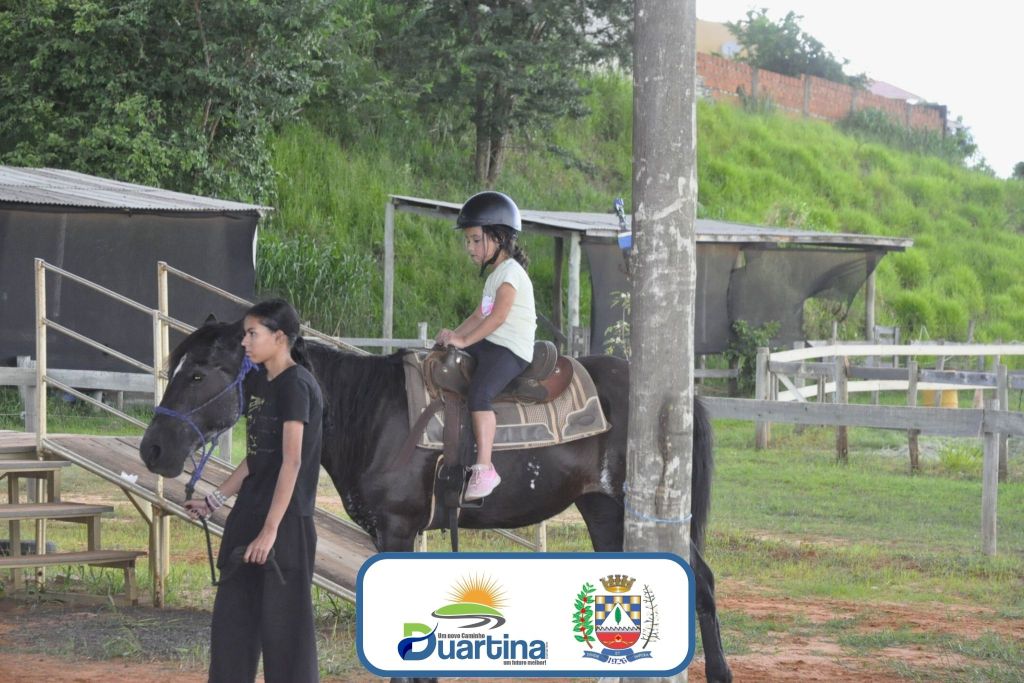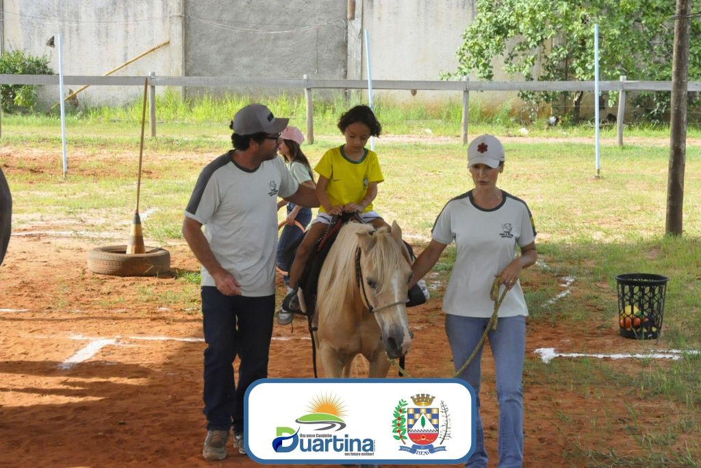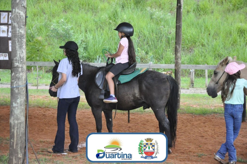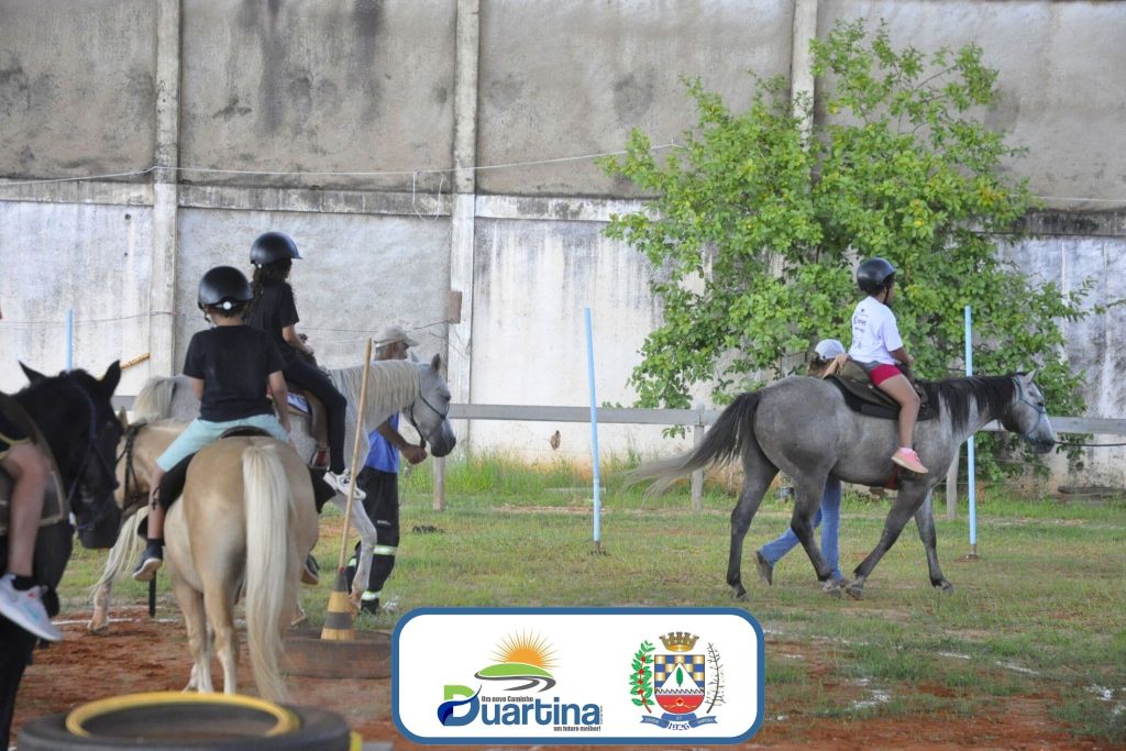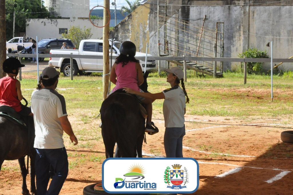 A atividade aconteceu no Clube de Rodeio de Duartina e foi uma iniciativa do professor João, com o objetivo de proporcionar às crianças o contato com a equoterapia, destacando a importância da disciplina, do respeito, da concentração e do desenvolvimento físico e emocional.