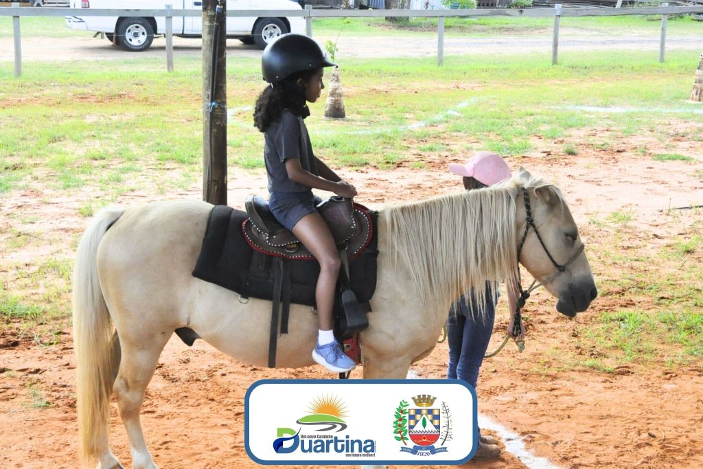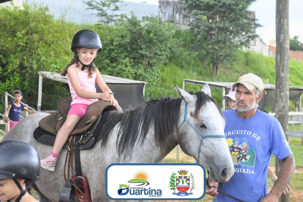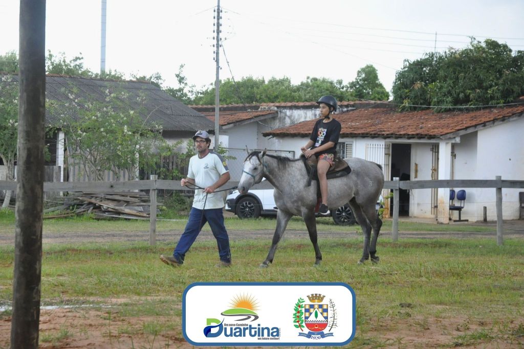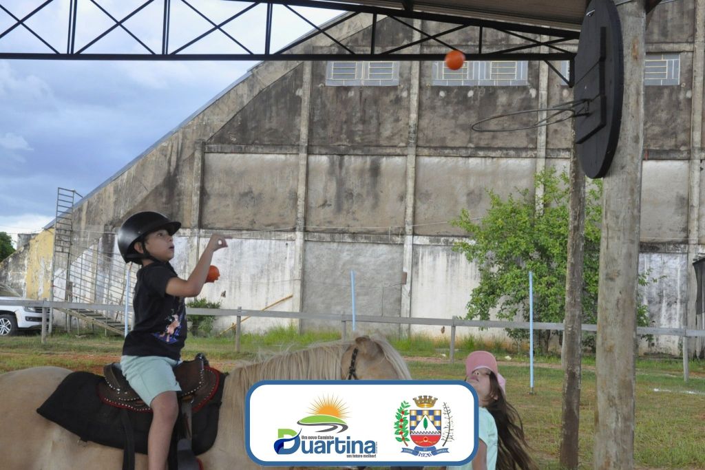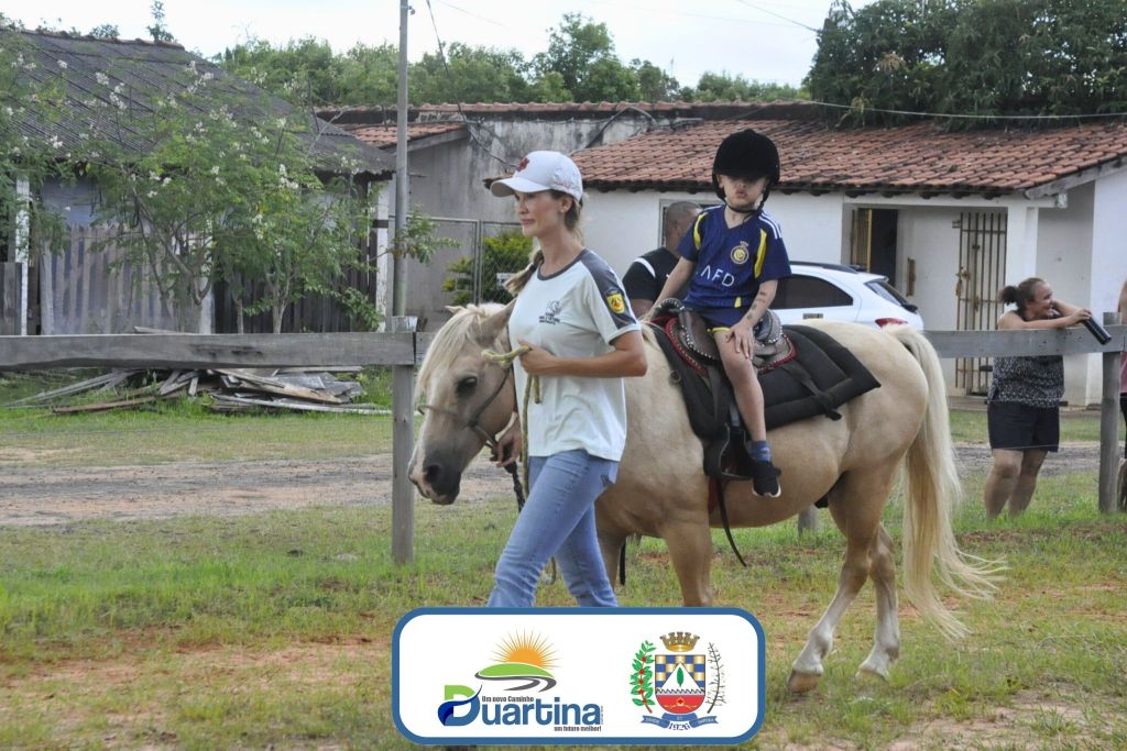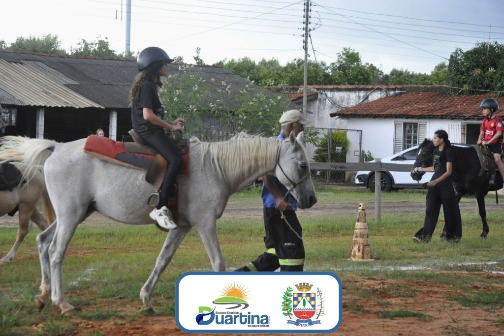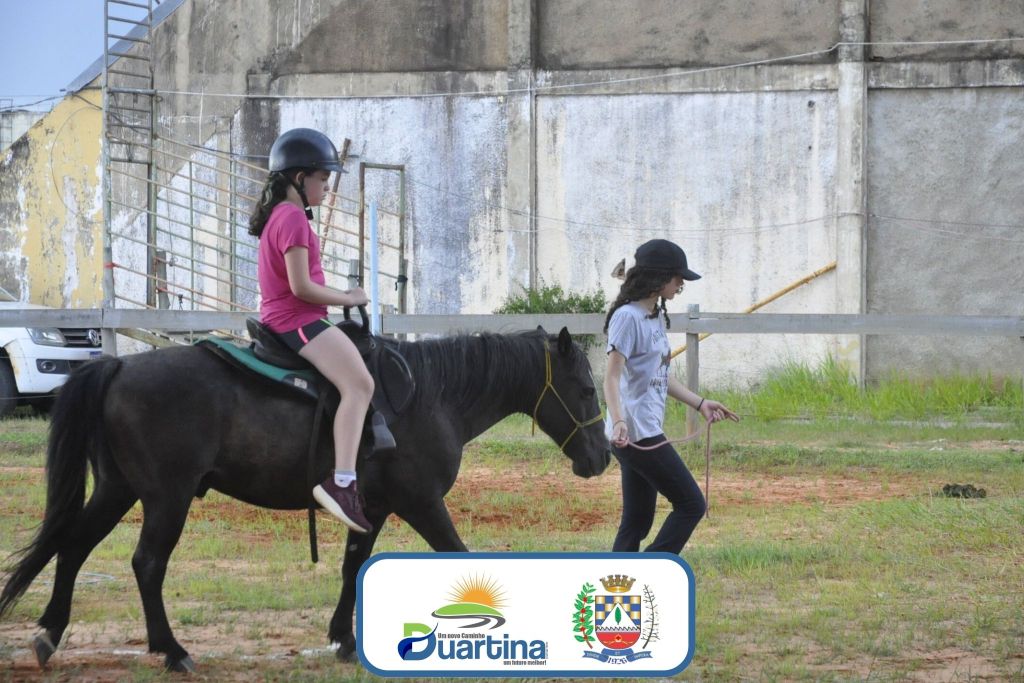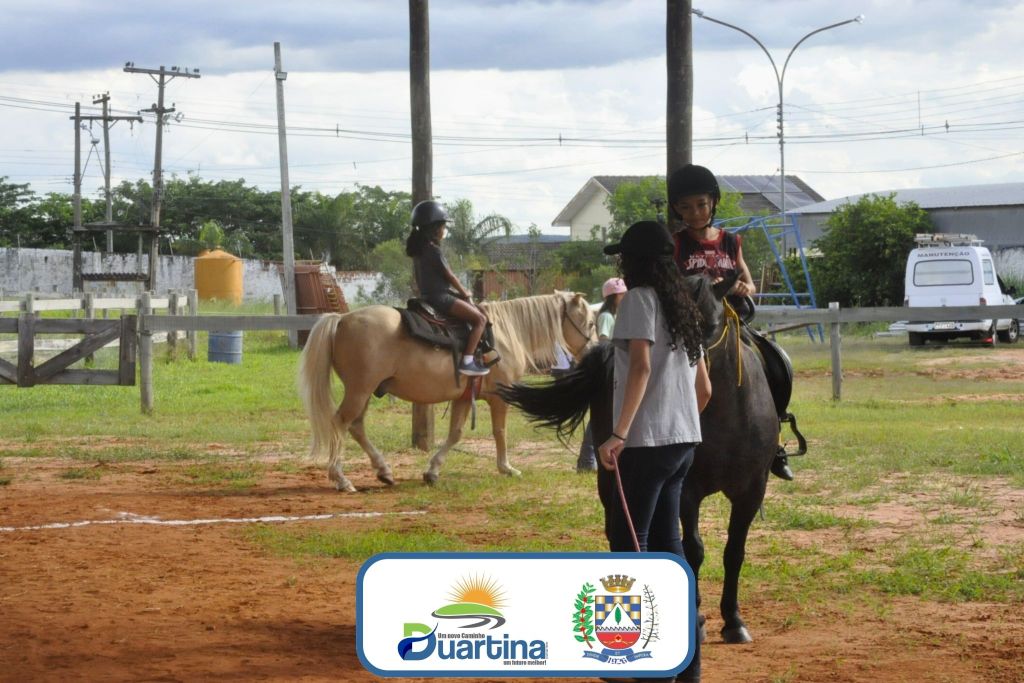 A atividade aconteceu no Clube de Rodeio de Duartina e foi uma iniciativa do professor João, com o objetivo de proporcionar às crianças o contato com a equoterapia, destacando a importância da disciplina, do respeito, da concentração e do desenvolvimento físico e emocional.