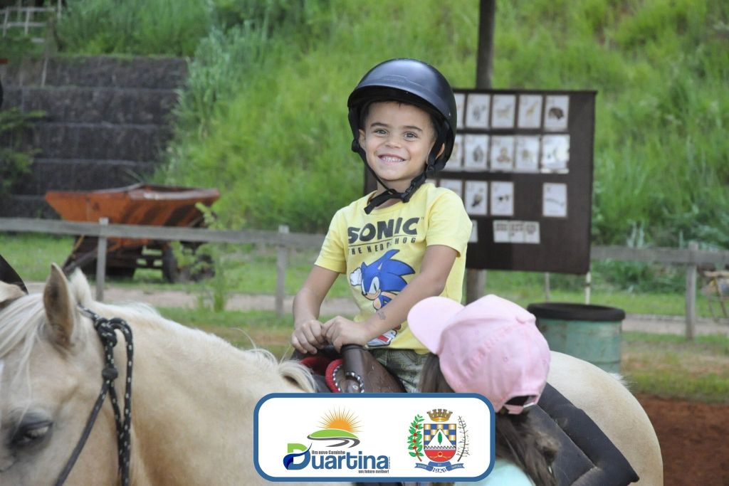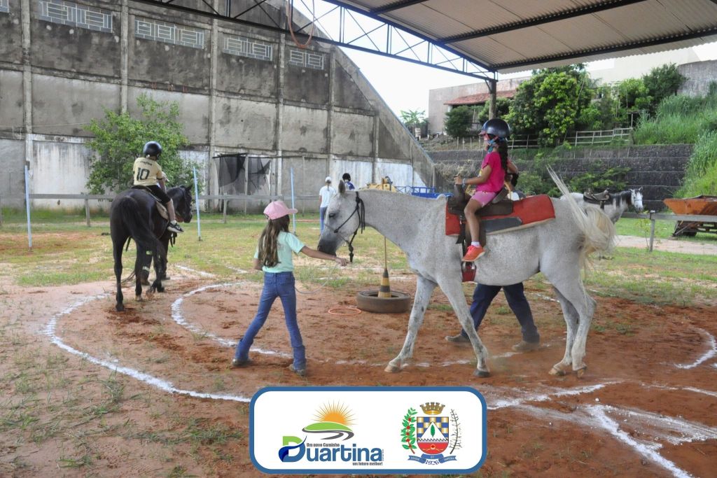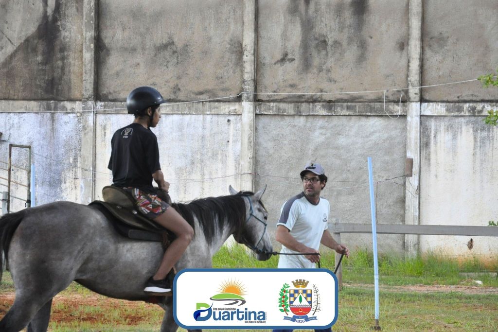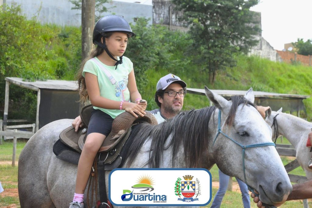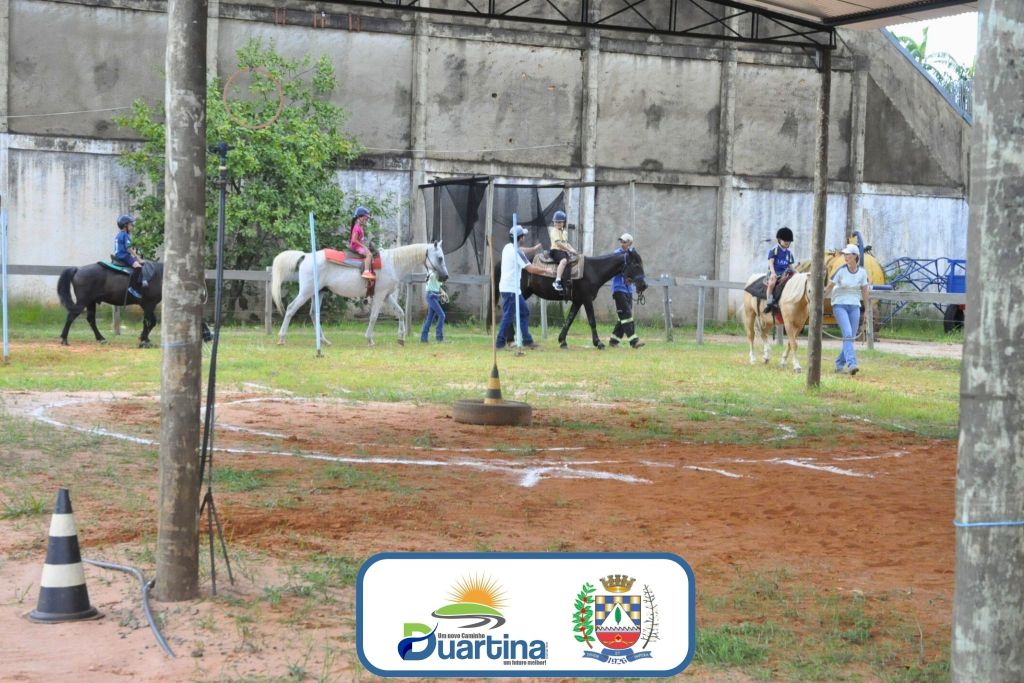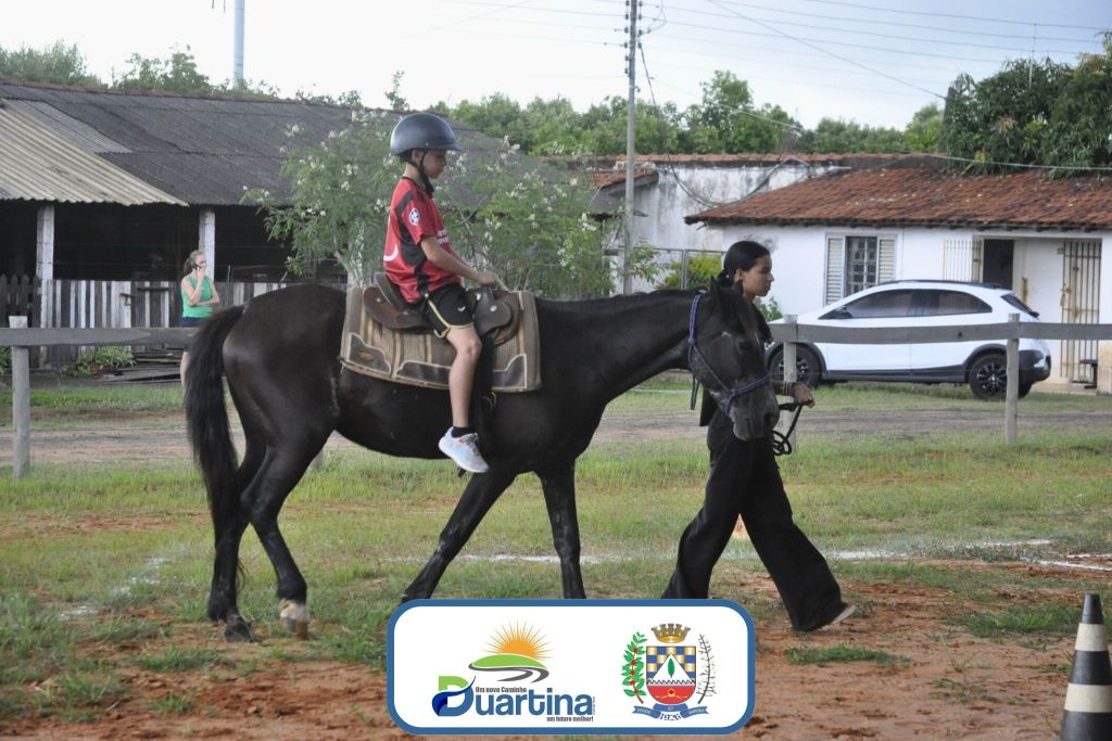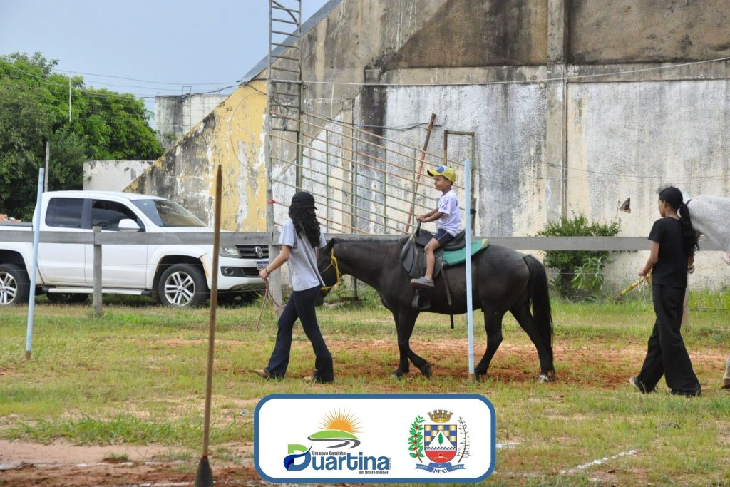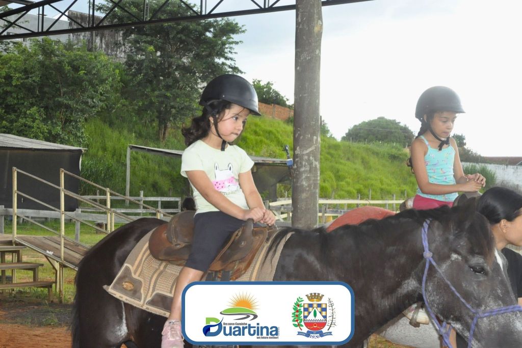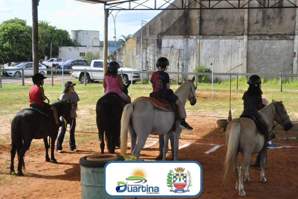 A atividade aconteceu no Clube de Rodeio de Duartina e foi uma iniciativa do professor João, com o objetivo de proporcionar às crianças o contato com a equoterapia, destacando a importância da disciplina, do respeito, da concentração e do desenvolvimento físico e emocional.