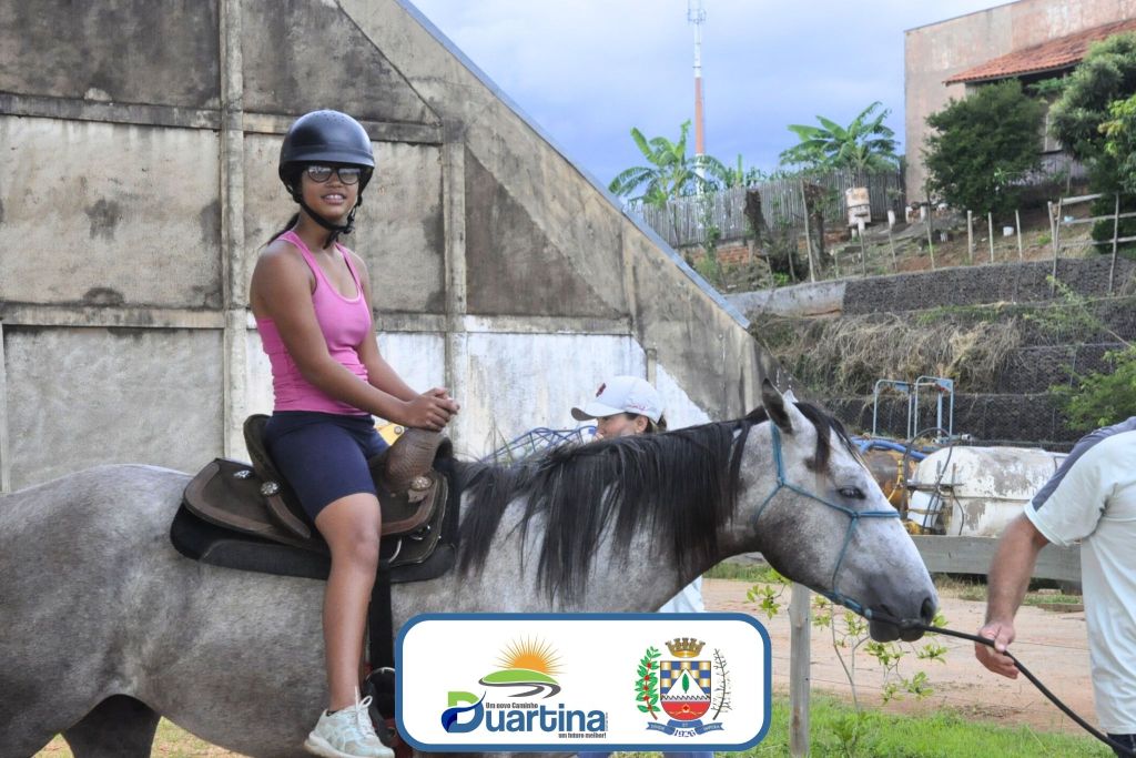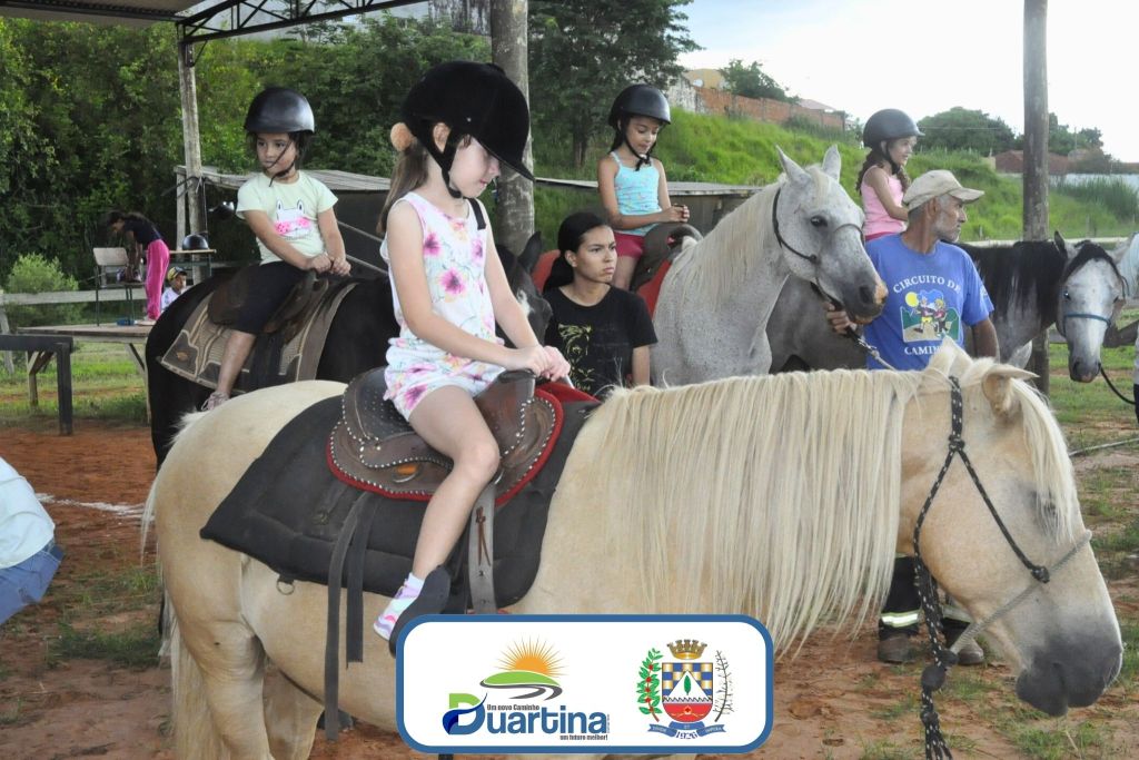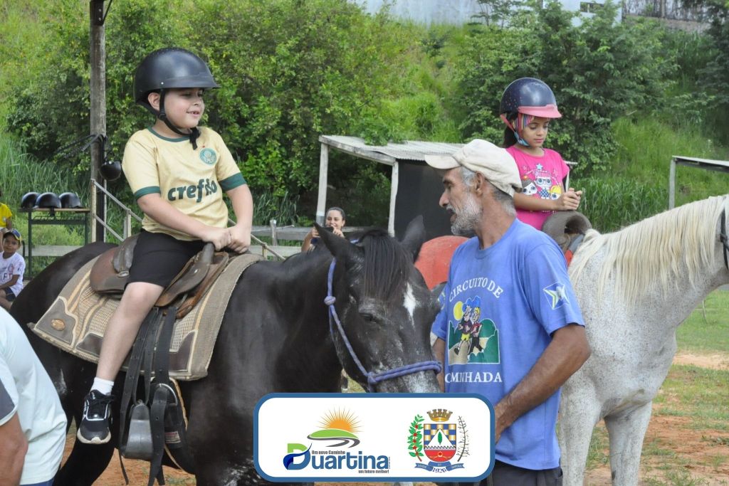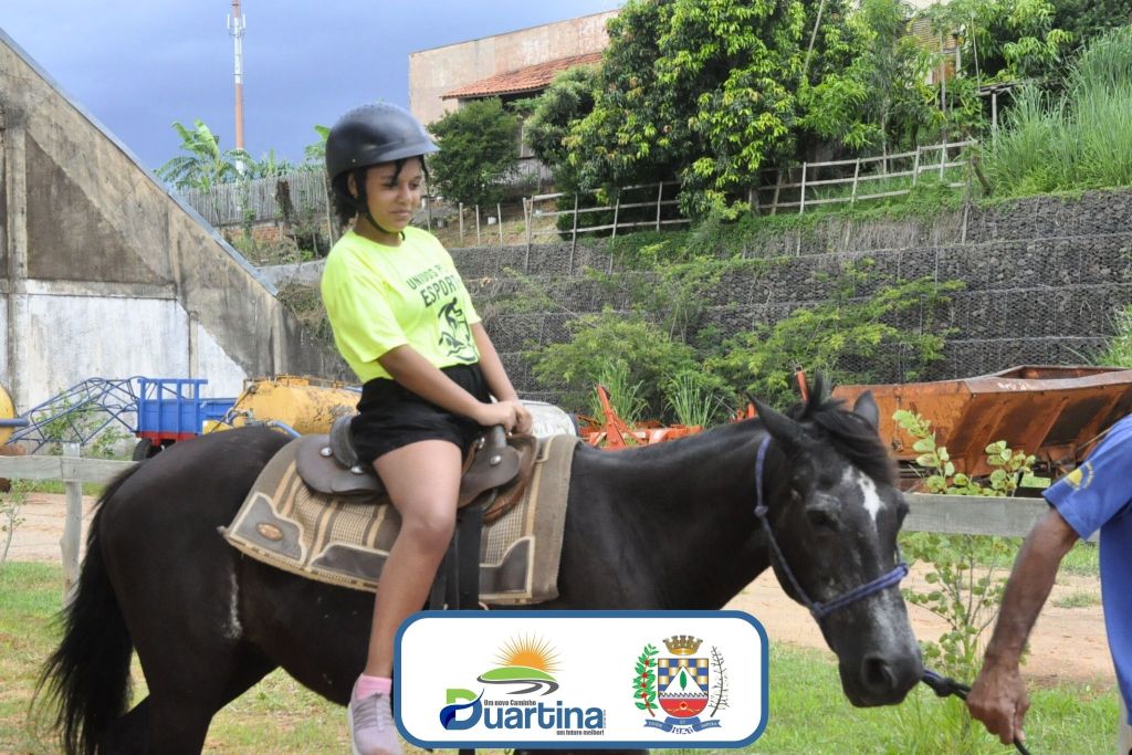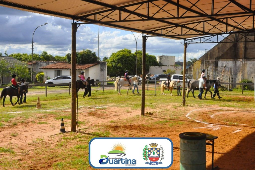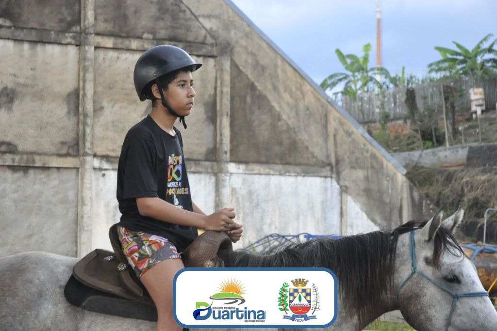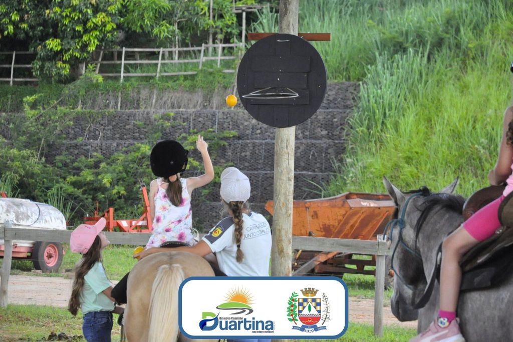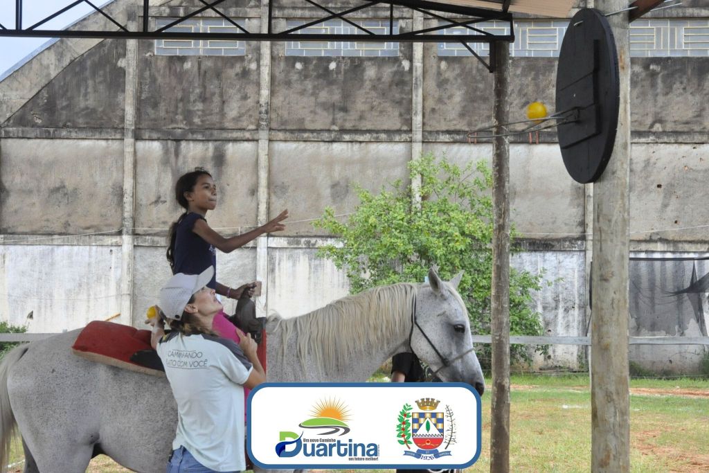 A atividade aconteceu no Clube de Rodeio de Duartina e foi uma iniciativa do professor João, com o objetivo de proporcionar às crianças o contato com a equoterapia, destacando a importância da disciplina, do respeito, da concentração e do desenvolvimento físico e emocional.