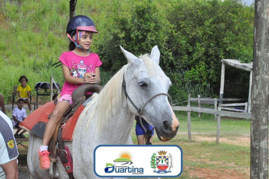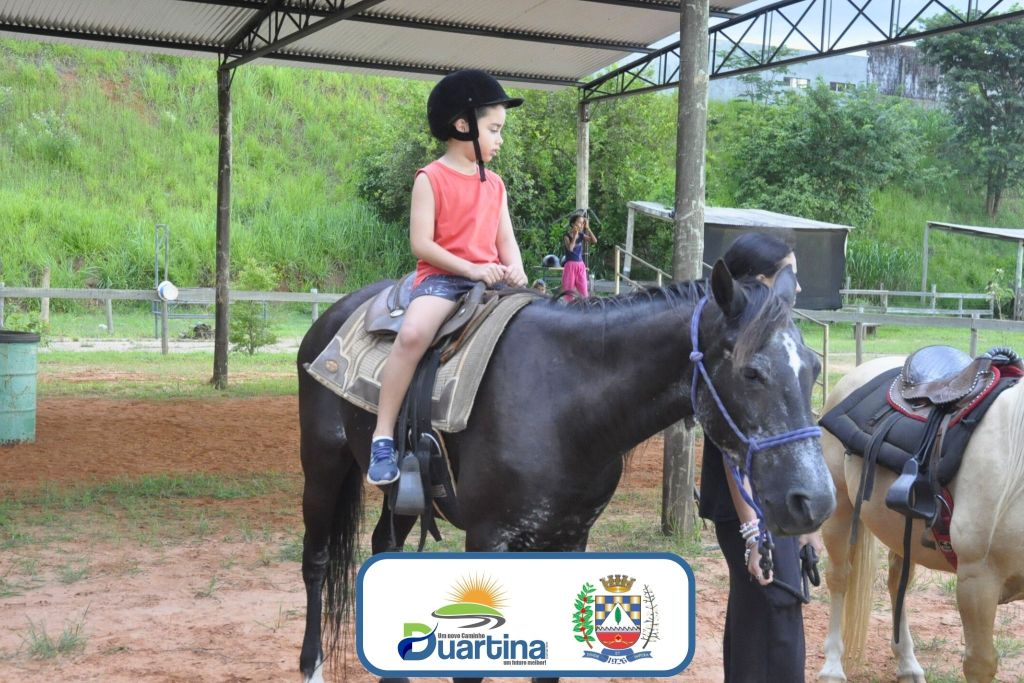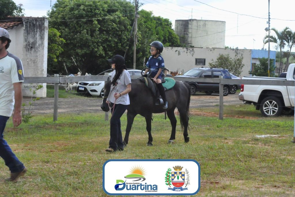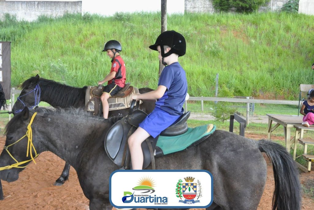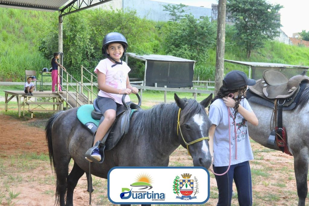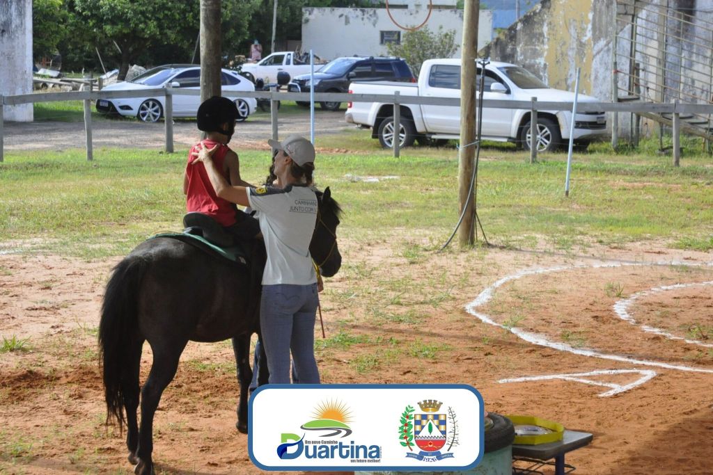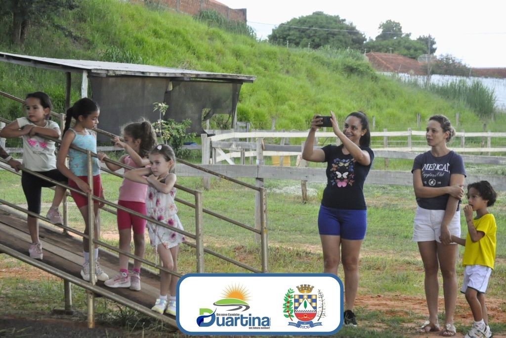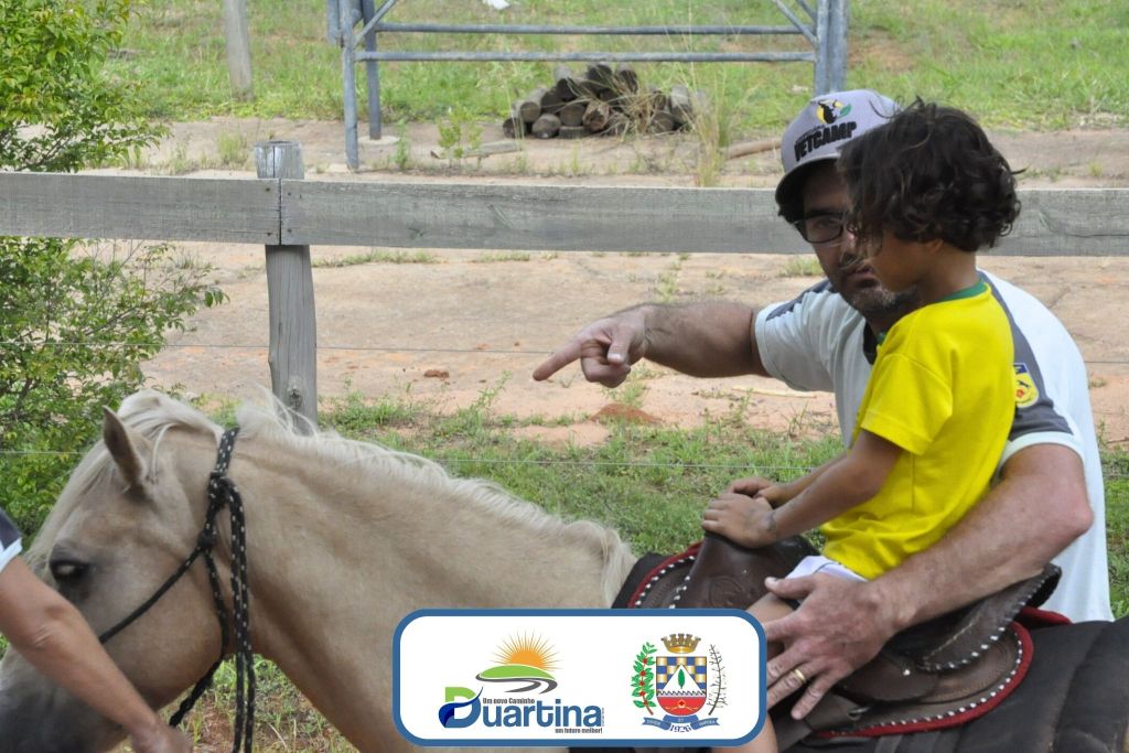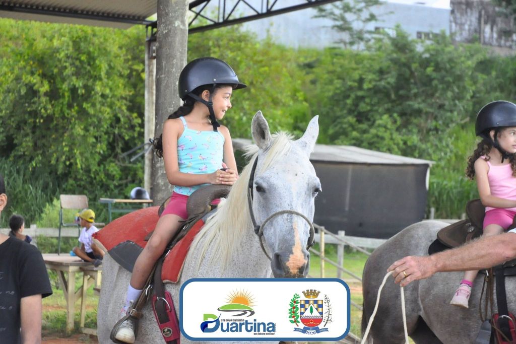 A atividade aconteceu no Clube de Rodeio de Duartina e foi uma iniciativa do professor João, com o objetivo de proporcionar às crianças o contato com a equoterapia, destacando a importância da disciplina, do respeito, da concentração e do desenvolvimento físico e emocional.