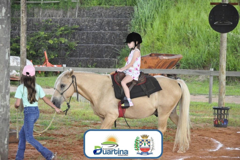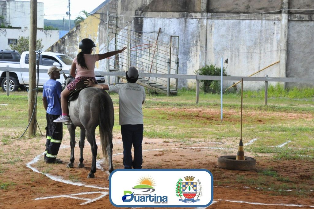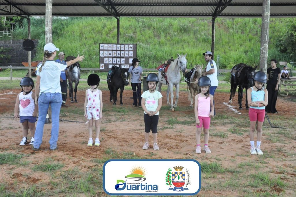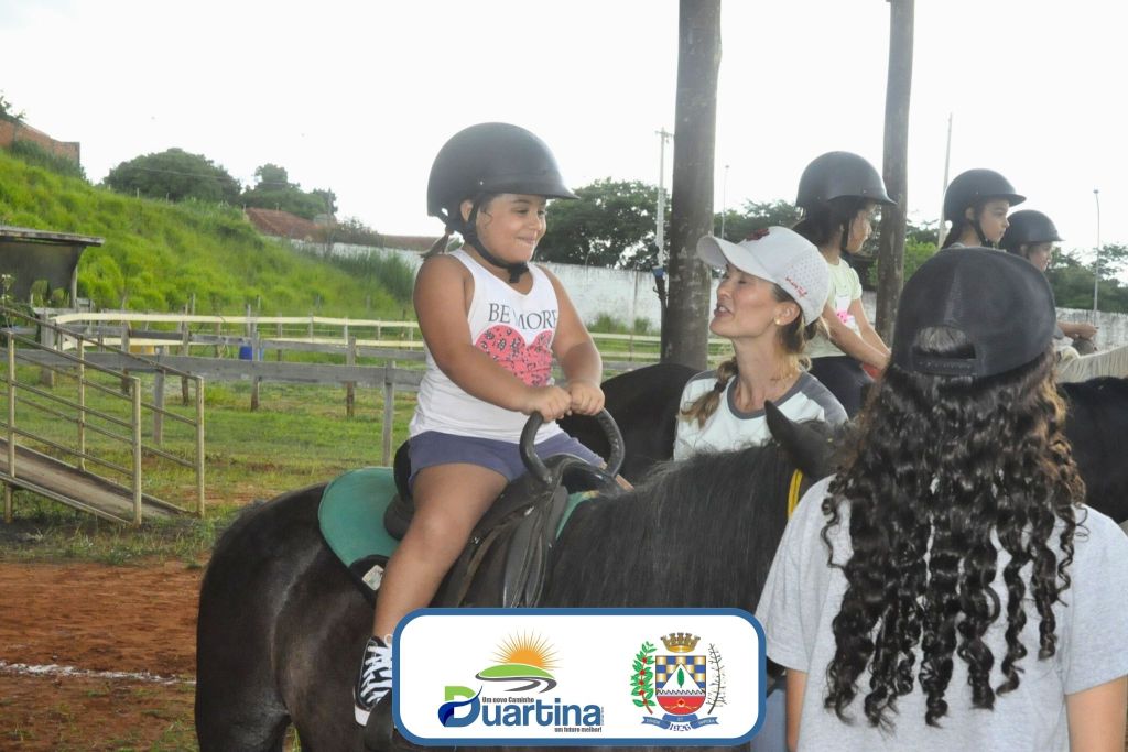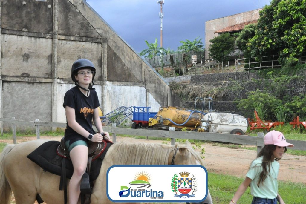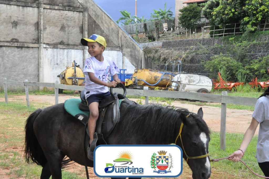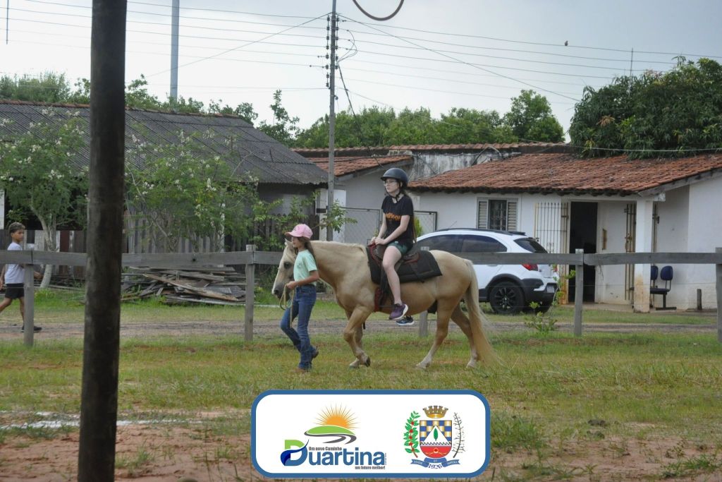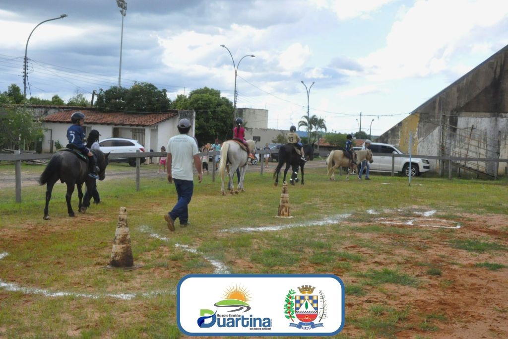 A atividade aconteceu no Clube de Rodeio de Duartina e foi uma iniciativa do professor João, com o objetivo de proporcionar às crianças o contato com a equoterapia, destacando a importância da disciplina, do respeito, da concentração e do desenvolvimento físico e emocional.