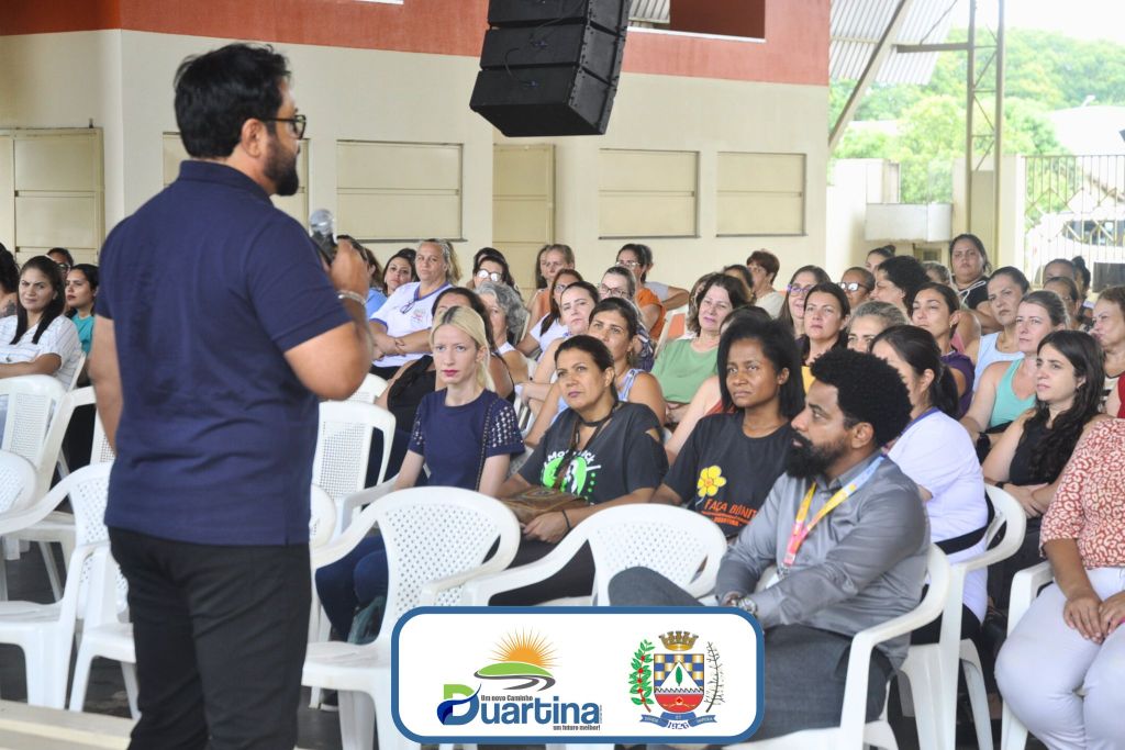 Os servidores da rede municipal de ensino de Duartina participaram, na tarde desta terça-feira (3), de uma palestra motivacional que marcou o momento de preparação para o início do ano letivo no município. A atividade foi realizada no Lanchódromo, reunindo profissionais da educação para um momento de reflexão, troca de experiências e fortalecimento do compromisso com o ensino público.