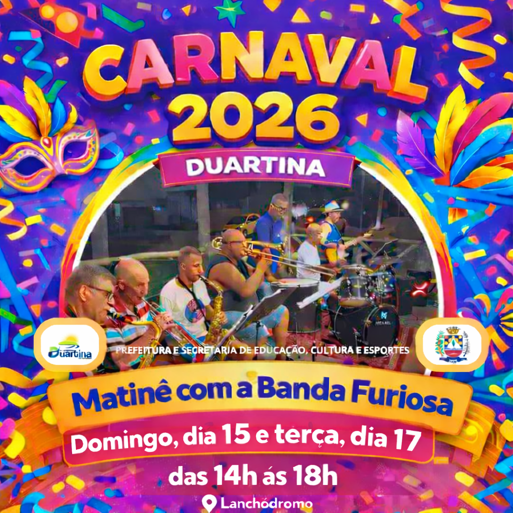 O Carnaval Duartina 2026 promete movimentar a cidade com uma programação completa, reunindo grandes shows, matinês para toda a família e os tradicionais desfiles das escolas de samba do município.