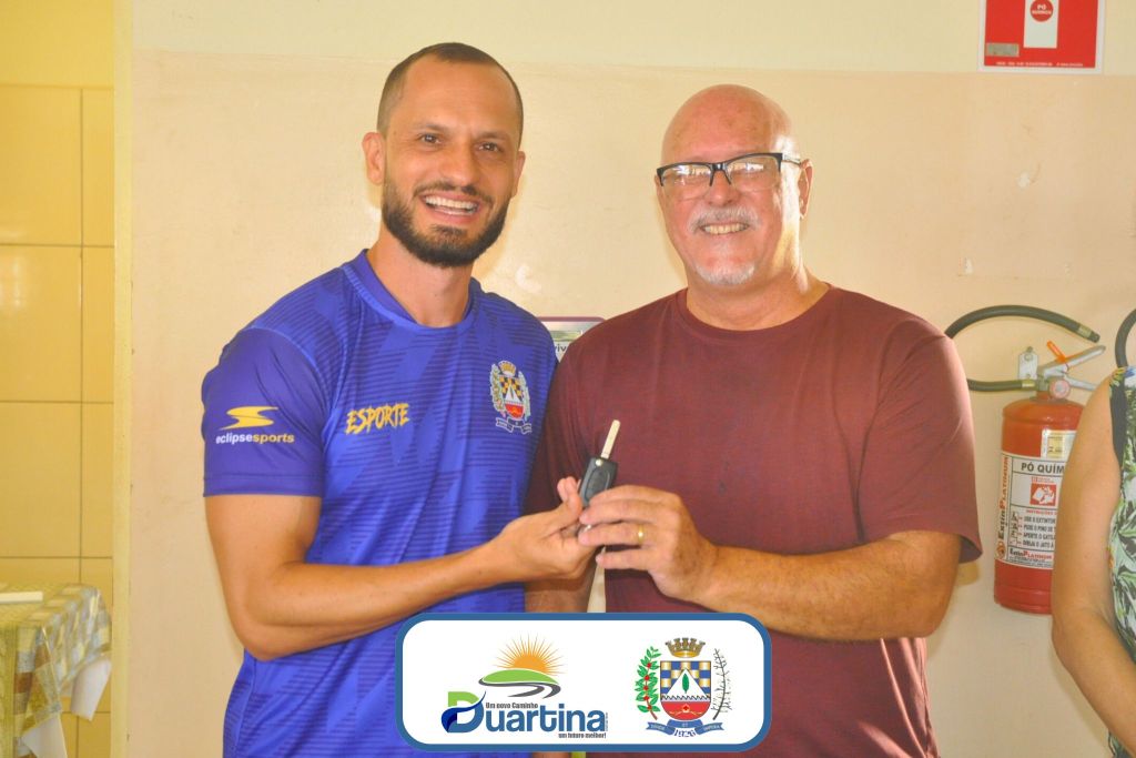 A entrega do veículo e das chaves ocorreu na sede da Secretaria de Educação, Cultura e Esportes e contou com a presença do presidente da Câmara, Leandro Faria, da prefeita Suzy Simão, do secretário Jorge Andrade, além de vereadores e servidores da Secretaria e do Legislativo.